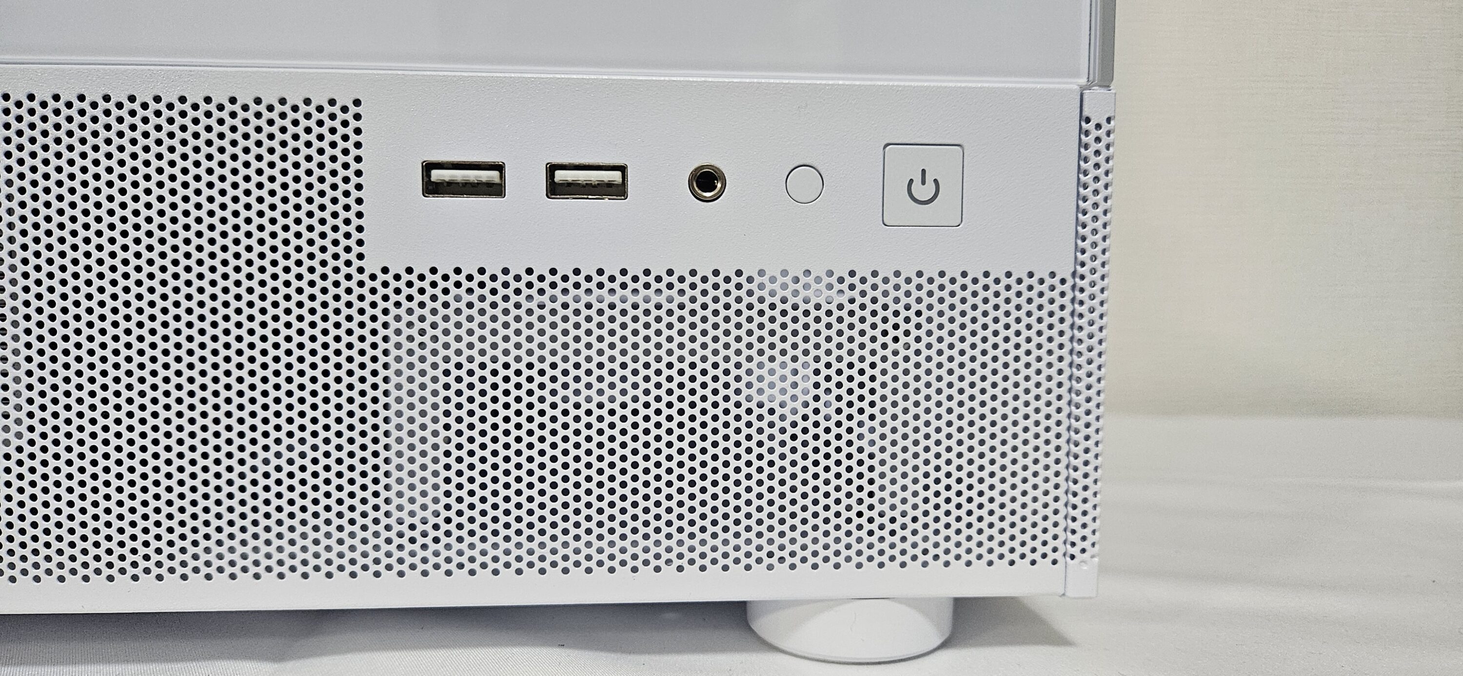 I/Oは正面の下部にも配備。ただ最近PCケースからすればやや少なめです。
