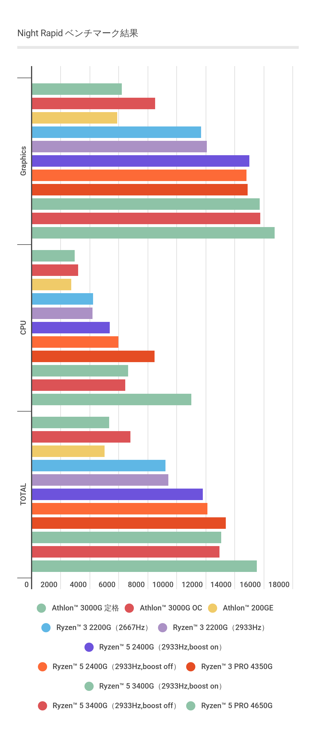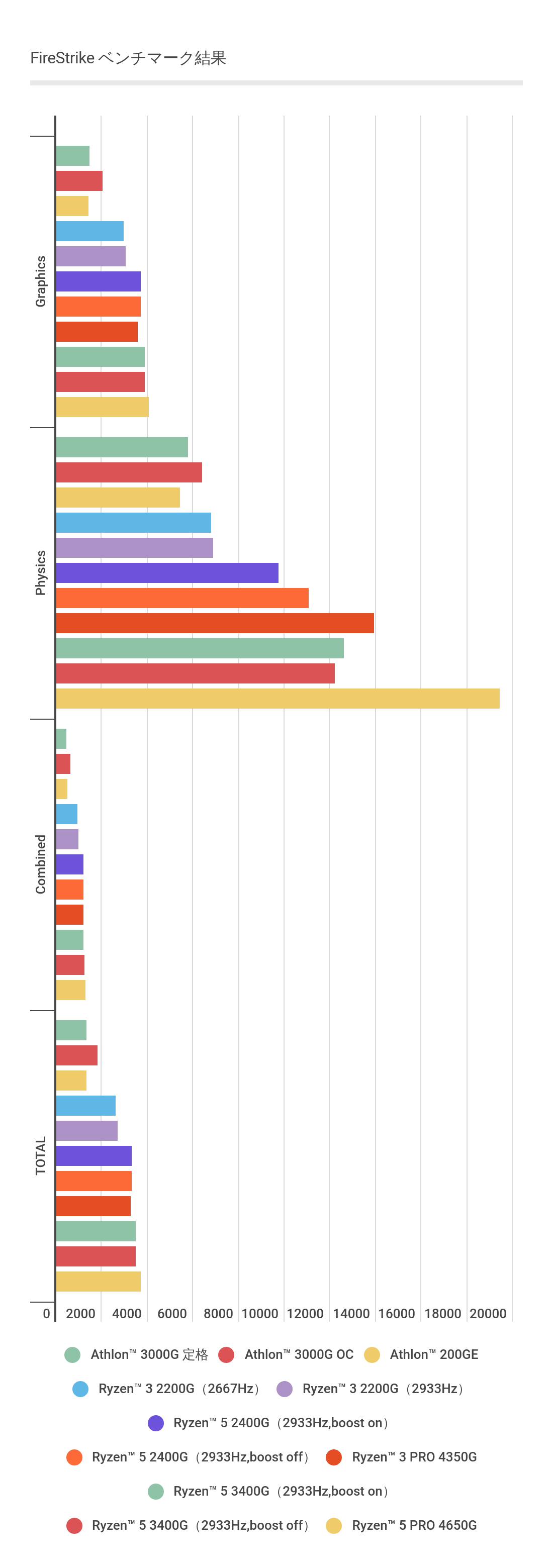 CPU/APU | Athlon™ 3000G 定格 | Athlon™ 3000G OC | Athlon™ 200GE | Ryzen™ 3 2200G | Ryzen™ 5 2400G |