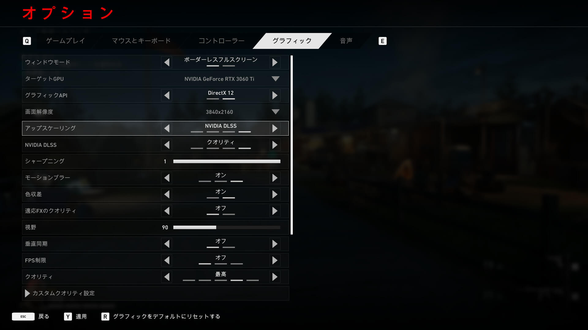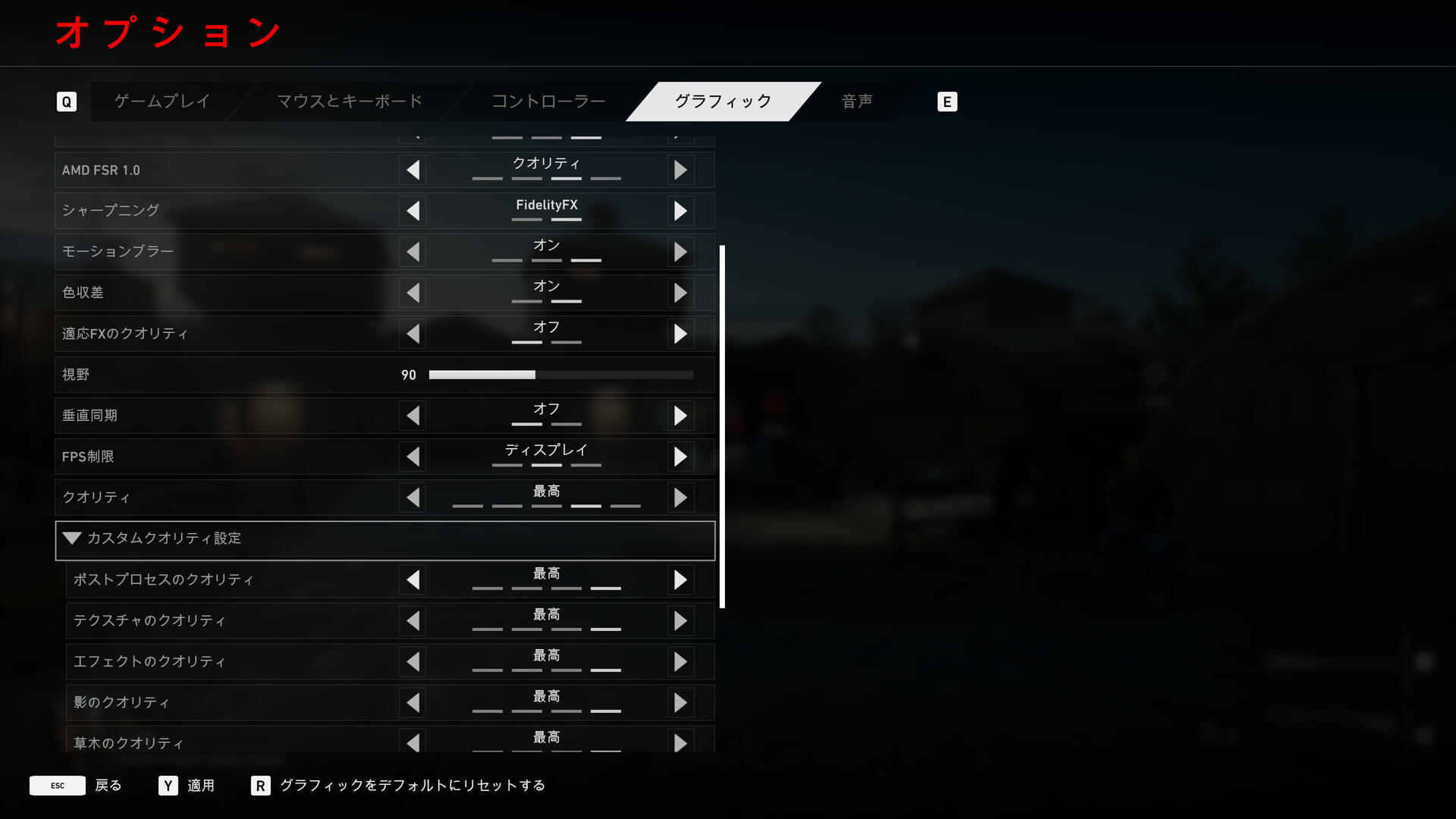 画質設定によって自動で設定値が変わるので、そこで問題があれば調整しましょう。