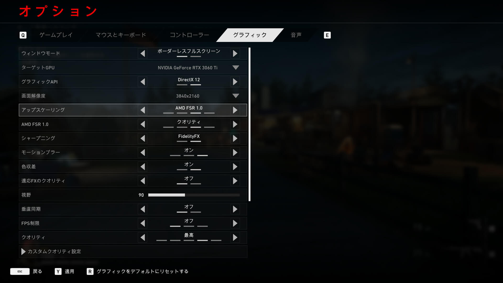そのためこのゲームをやるときはFSRは利用するのが良いでしょう。
