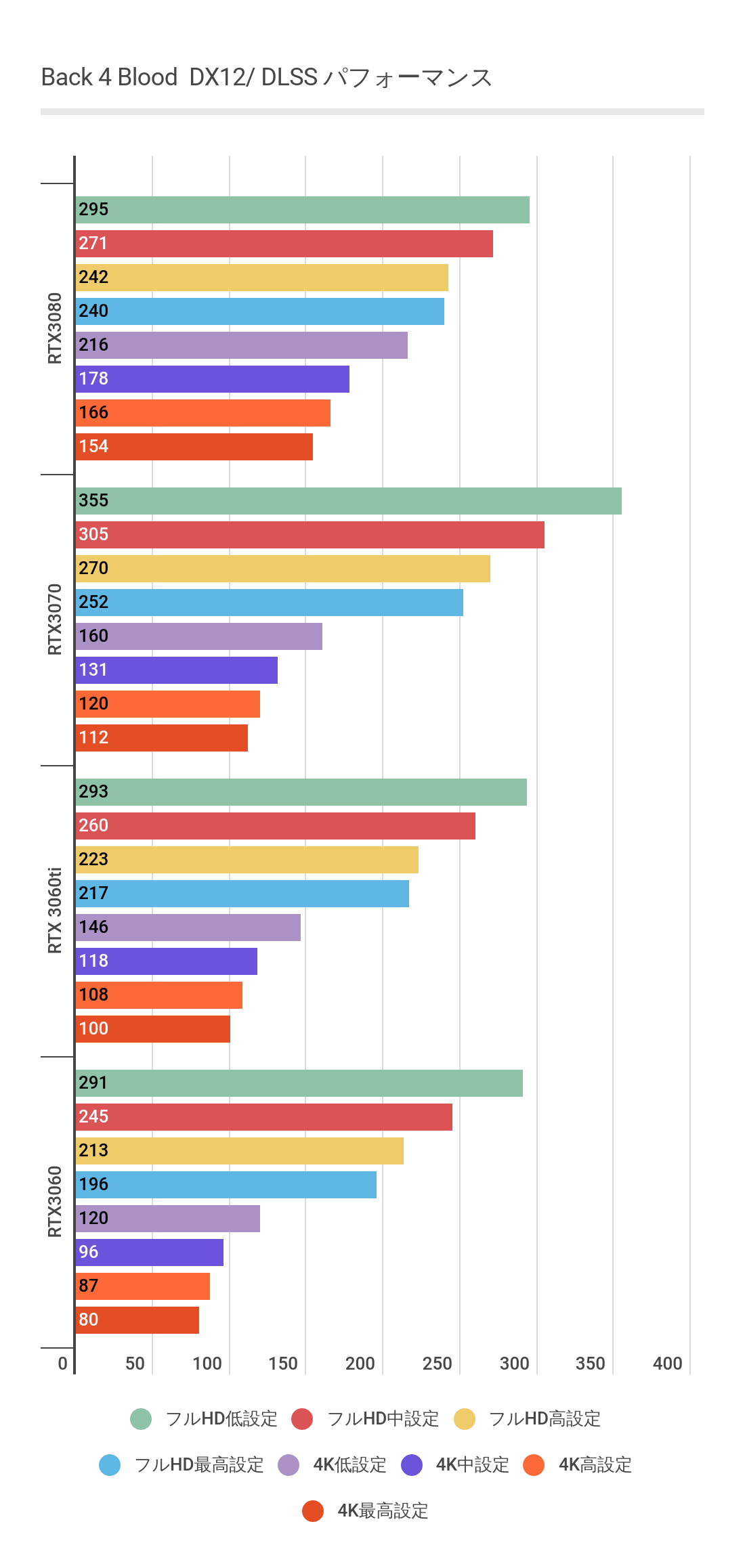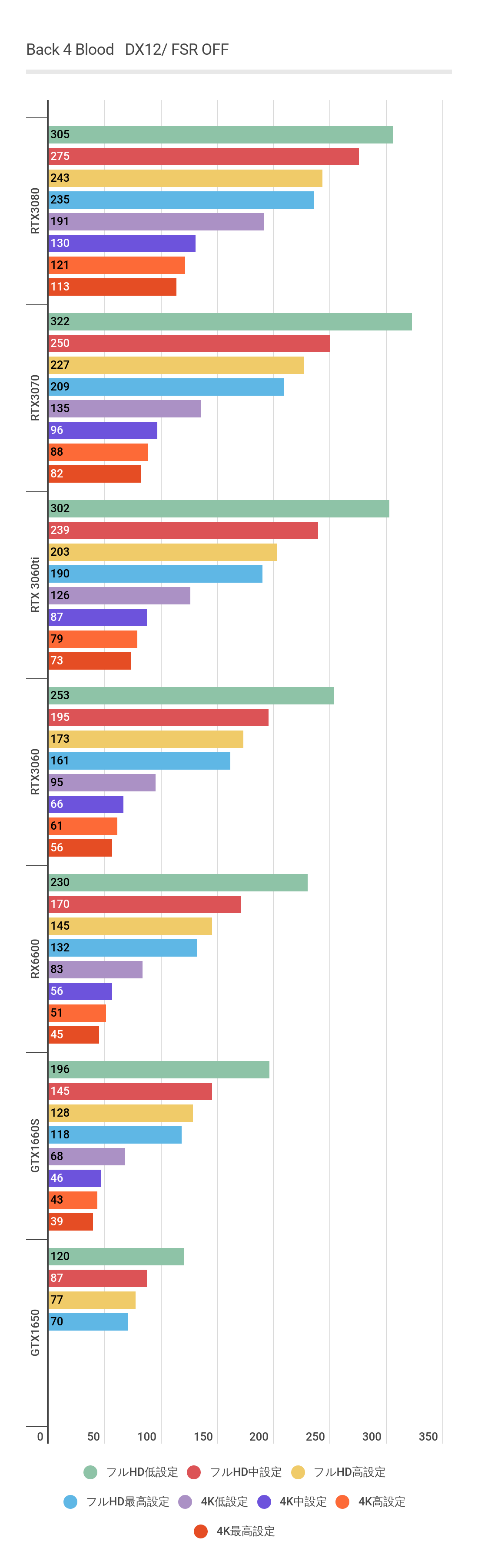 Back 4 Bloodを4K低画質で210fps、高画質で120fpsほどは確保できますので、