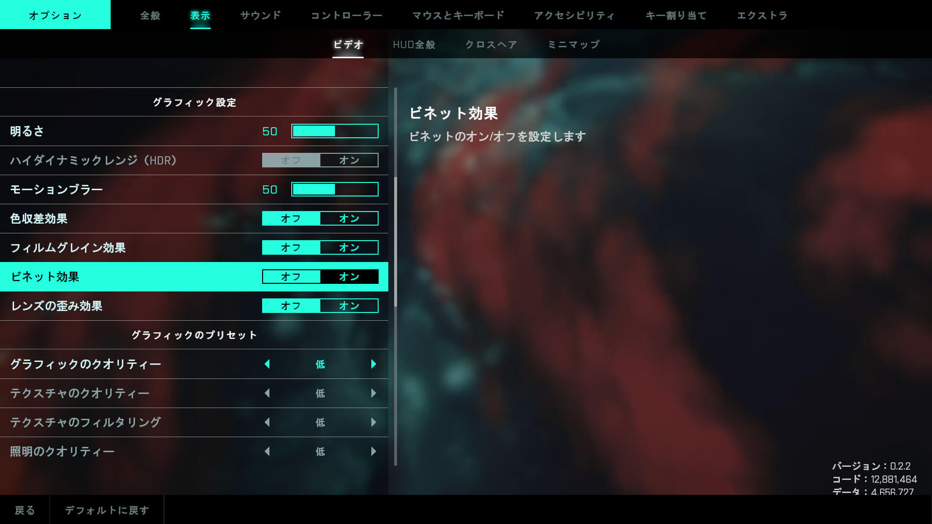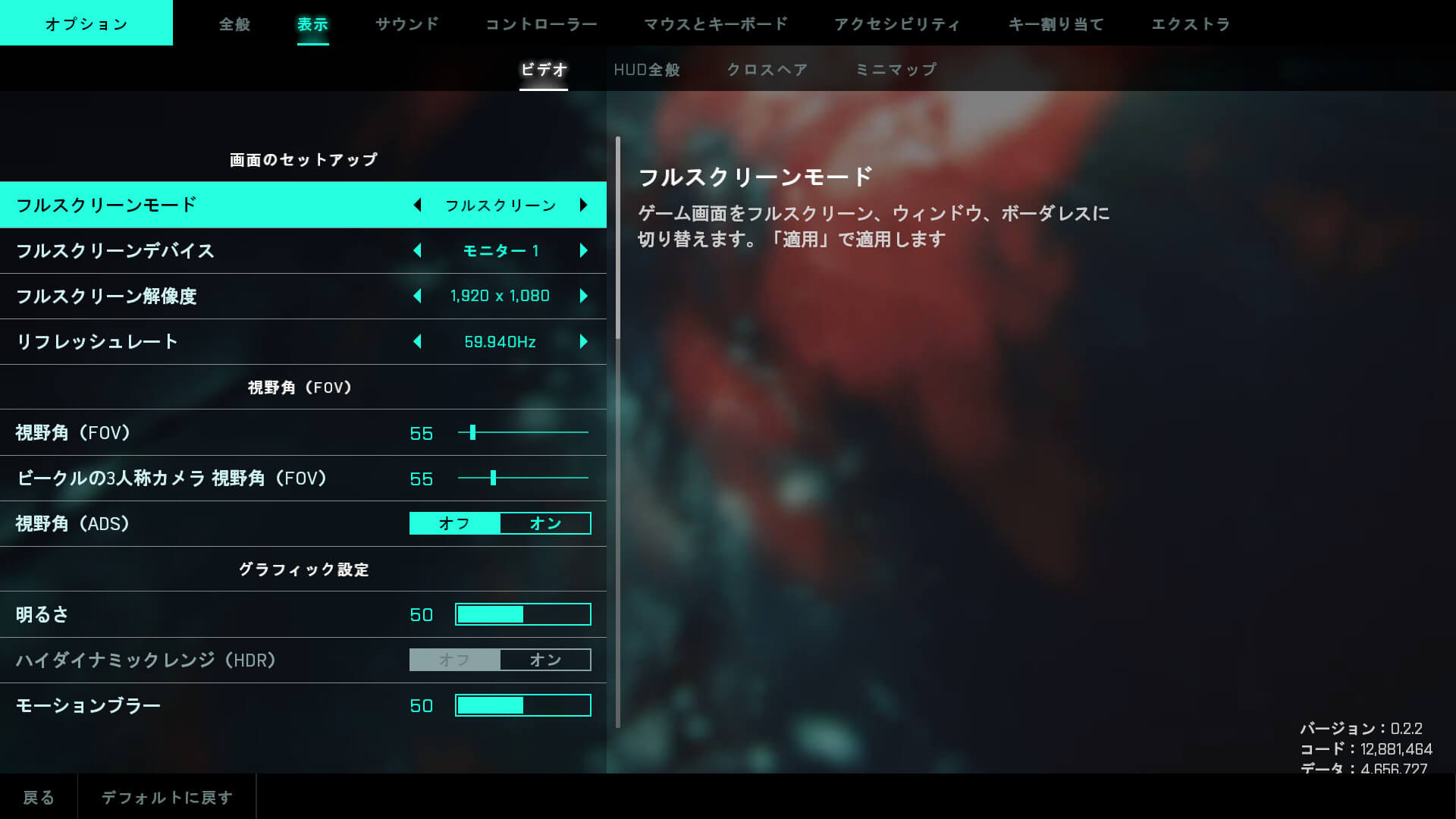 視野角やモーションブラーなど画面の見やすさに影響する項目も細かく設定できます。