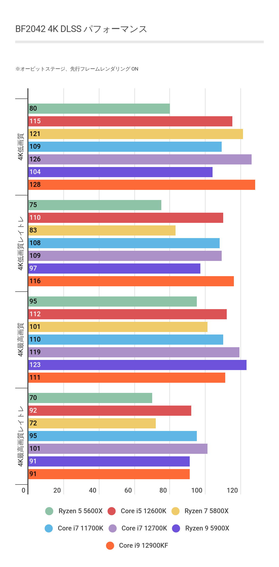 ウルトラワイドモニターや4Kモニターなど高解像度でBattlefield 2042遊ぶ場合を想定し計測です。