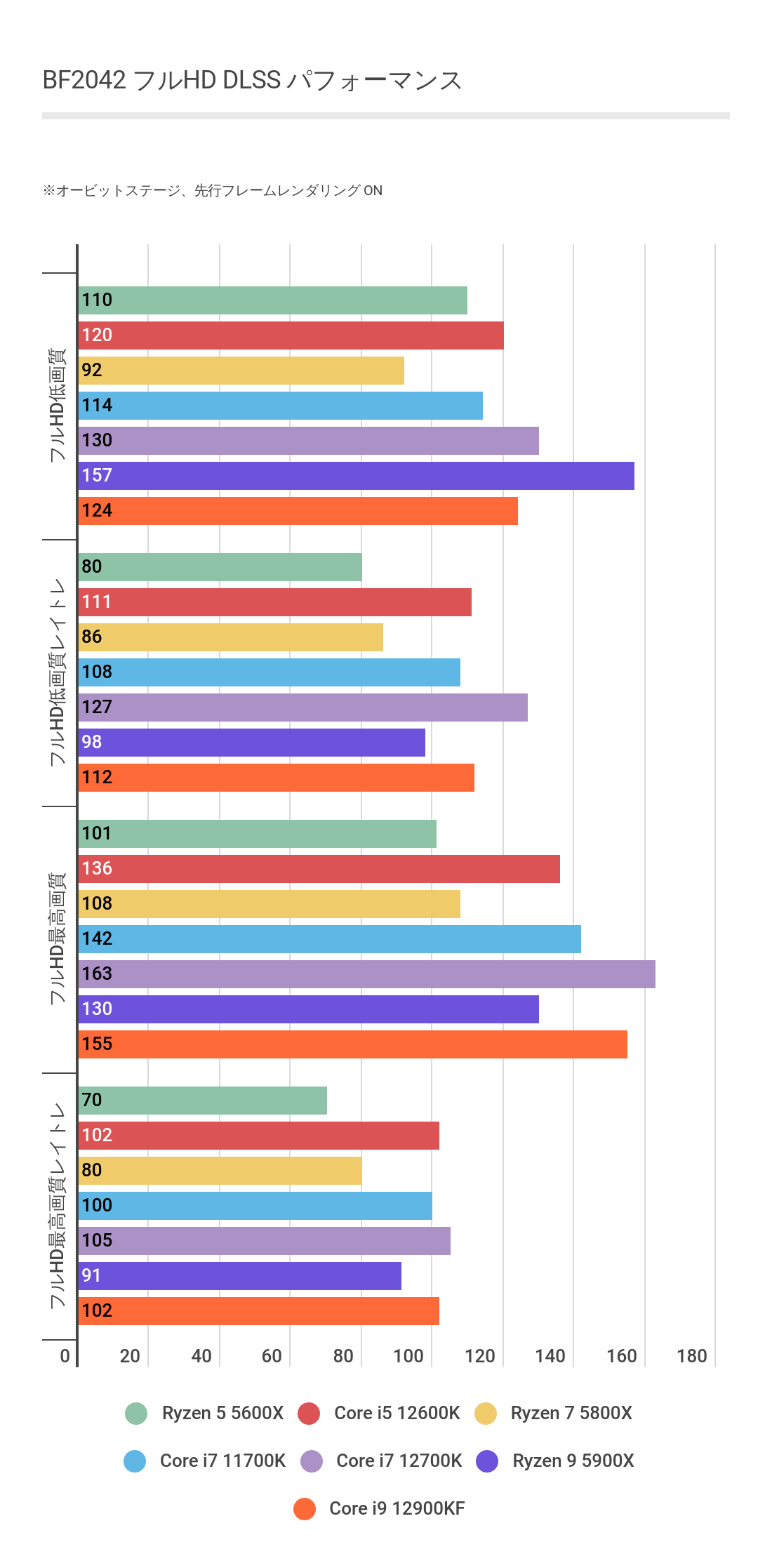 フルHDではBattlefield 2042を最大180fps程度で遊ぶことができます。