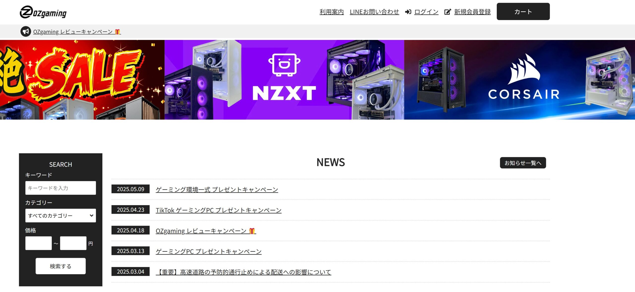 OZgaming | 中級者 | 全般 | ★1 | ★5 | ★2 | ★4 | ★3 | それなり | なし | 5-14日営業日 | メールサポート | 1年間(3年間) | 商品数 |