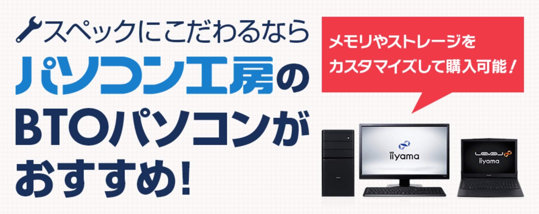 詳細は後述する「BTOパソコンの選び方」を参考にしてみてください。