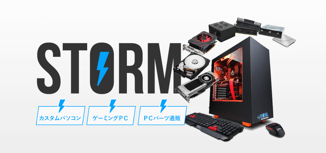 ストーム | 中級者 | 中~高価格 | ★2 | ★3 | ★2 | ★2 | ★4 | 少ない | なし | 最短5-6営業日出荷 | 平日10:00-18:00 | 1年間(3年間) | ホワイトPC |