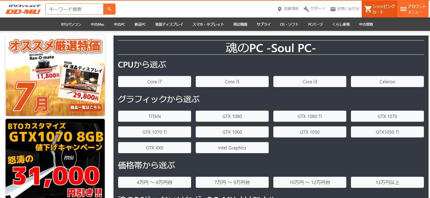 DO-MU | 中級者 | ‐ | ★2 | ★1 | ★1 | ★2 | ★3 | それなり | なし | 発送1日~3日程度 | 11:00-18:30 | 1年間 | 魂のPC |