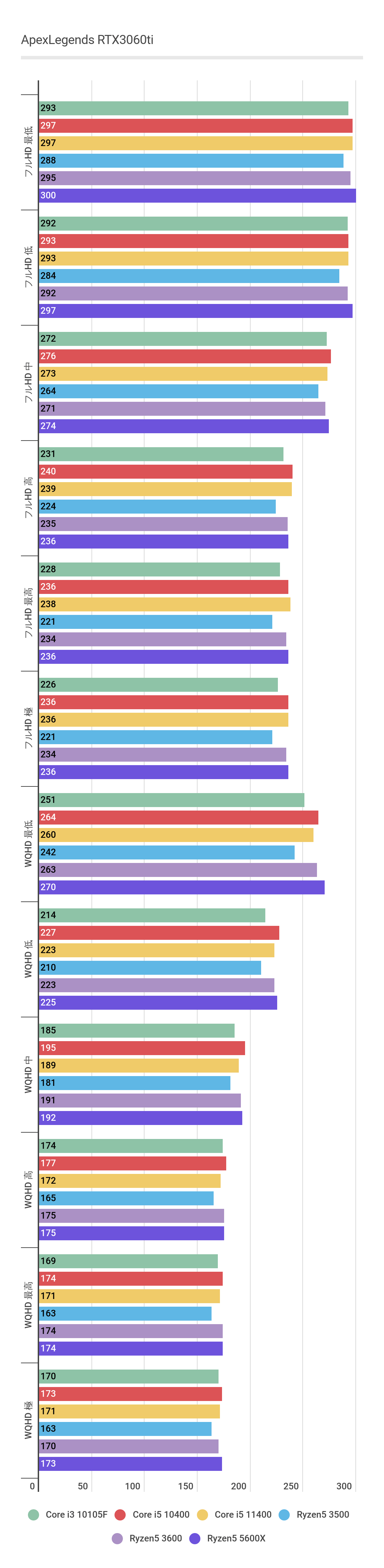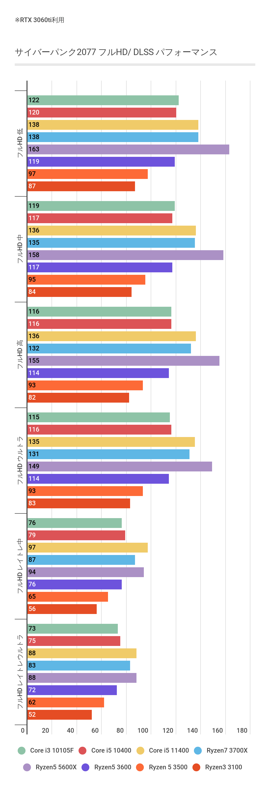 40~60fpsほどの差を考えるとRTX3060tiの力を十分引き出せてないようです。
