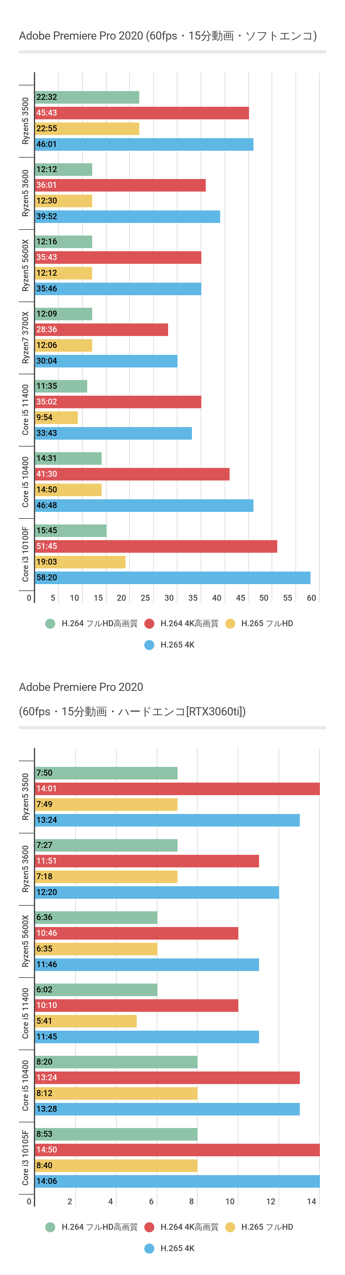 またハードウェアエンコードになると今度はRyzen 5 3500より遅い結果になっており、