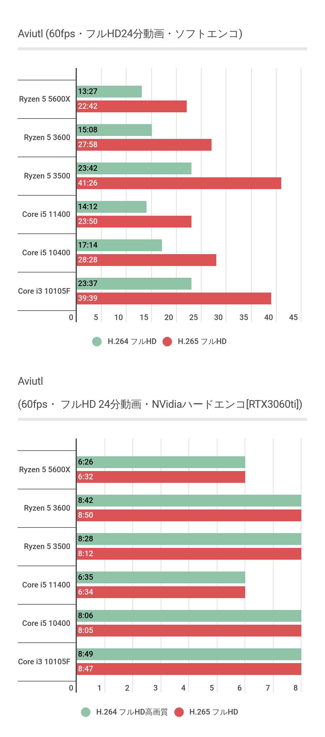 AviutlはどちらかというとIntel側に最適化されている印象で、
