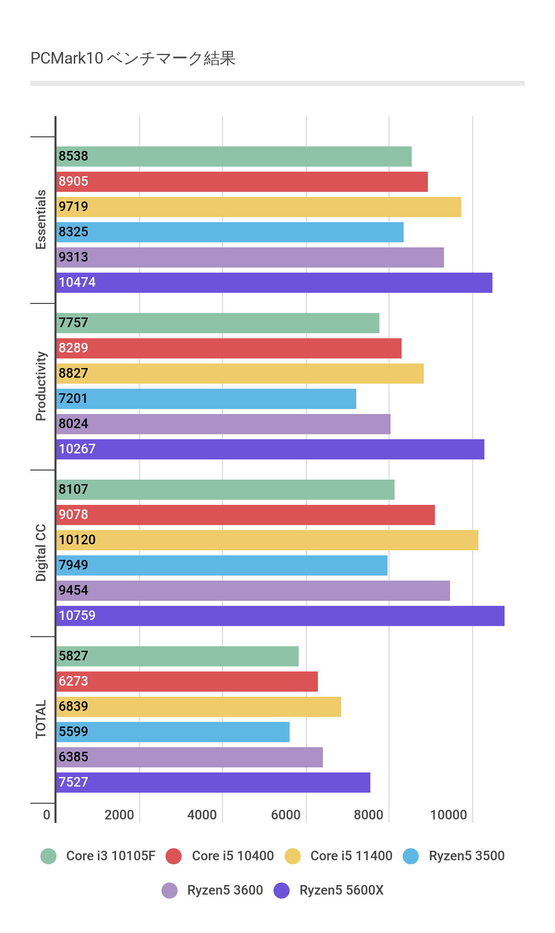 Core i5 10400がふるわないというのもありますが、同程度のパフォーマンスはすごいです。