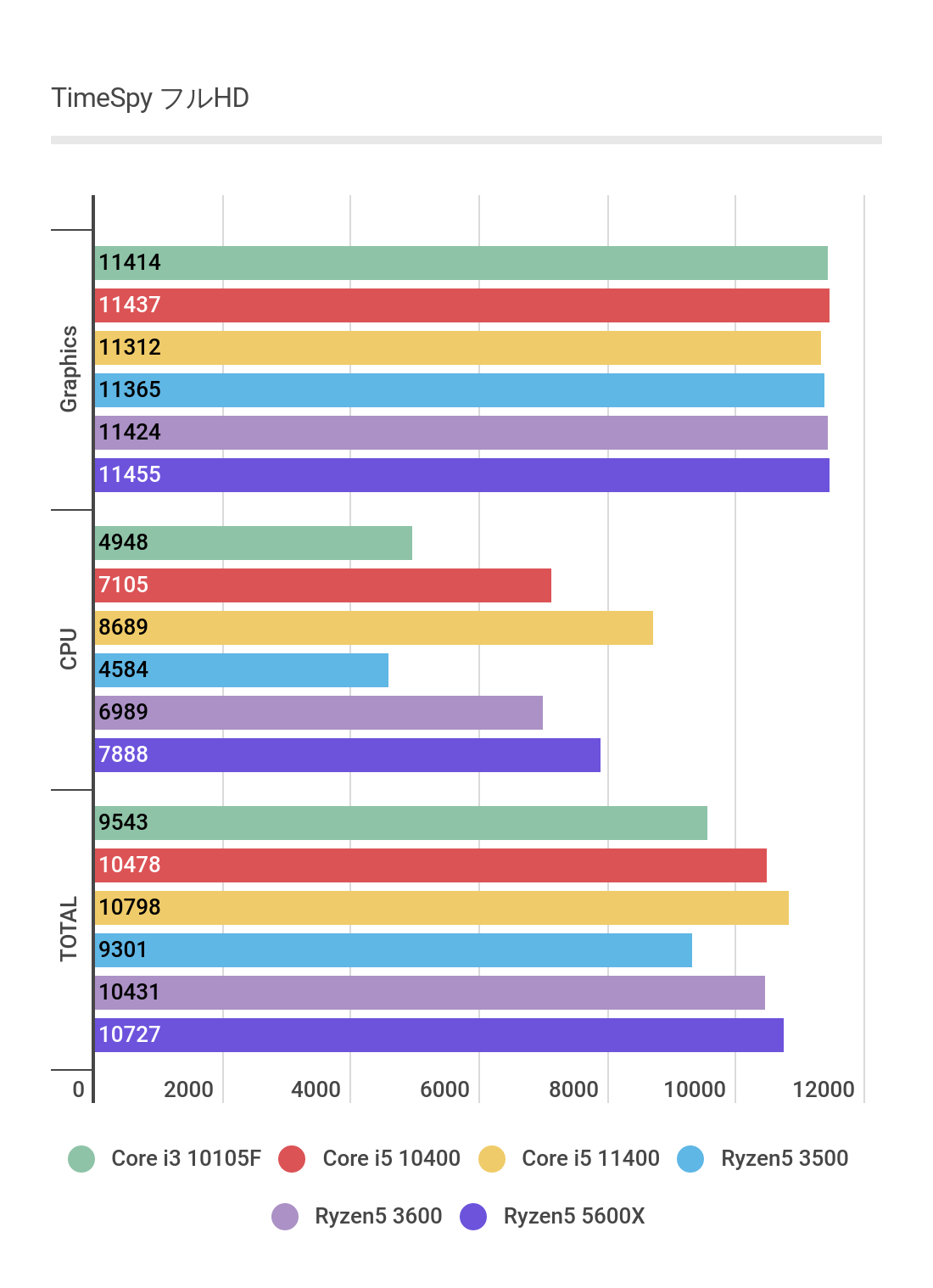 そこで低価格なCore i3 10105Fがより高額なCPU達に対して、