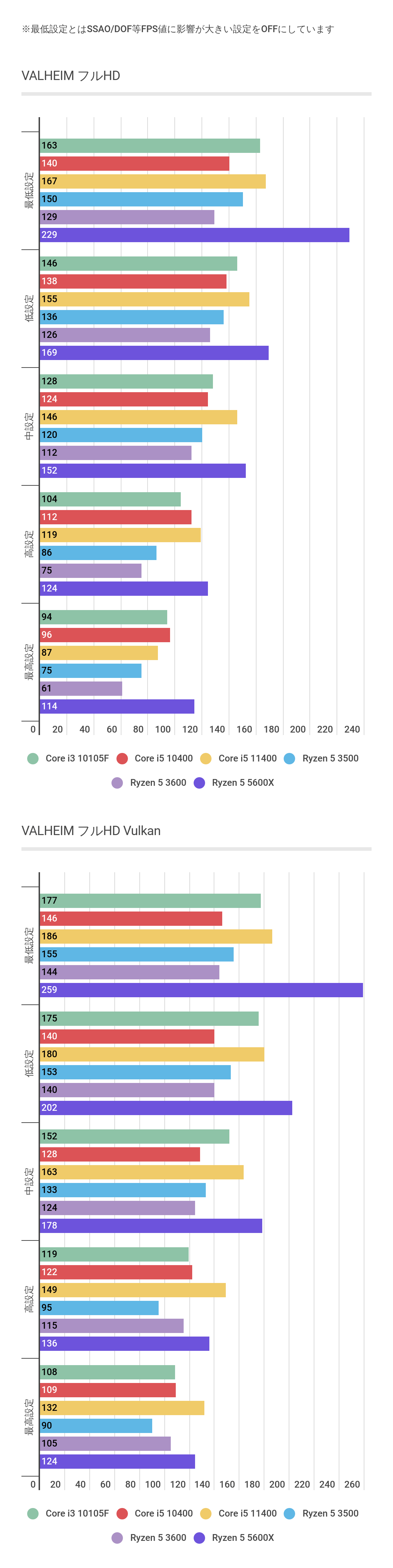このゲームにおいてはCore i5 10400のパフォーマンスがなぜか悪いというのもありますが、