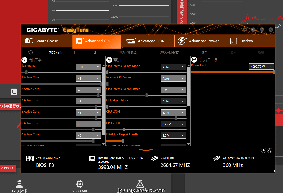 今回GIGABYTE Z490M Gamingで最低値である37Wにていくつかテストしてみました。