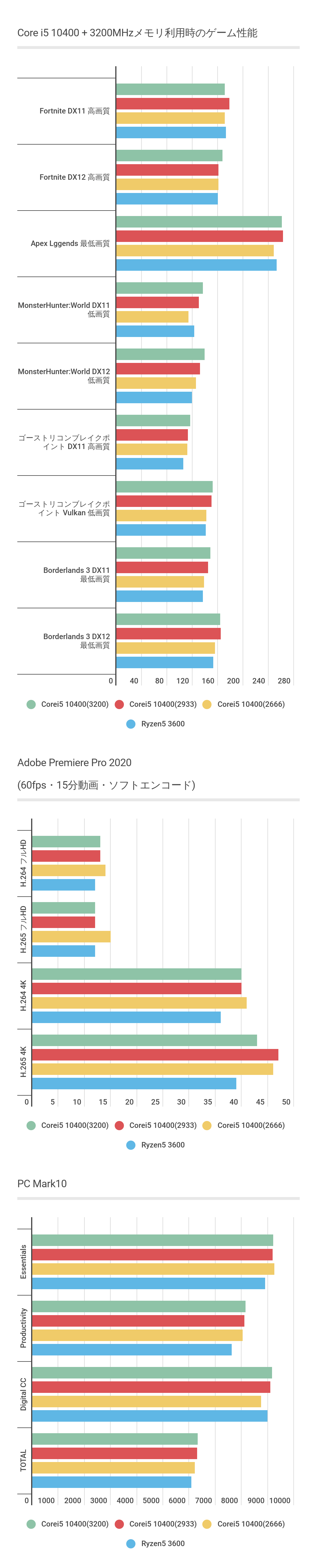 今回計測にてCore i5 10400 + 3200MHzメモリという組み合わせでもテストしました。