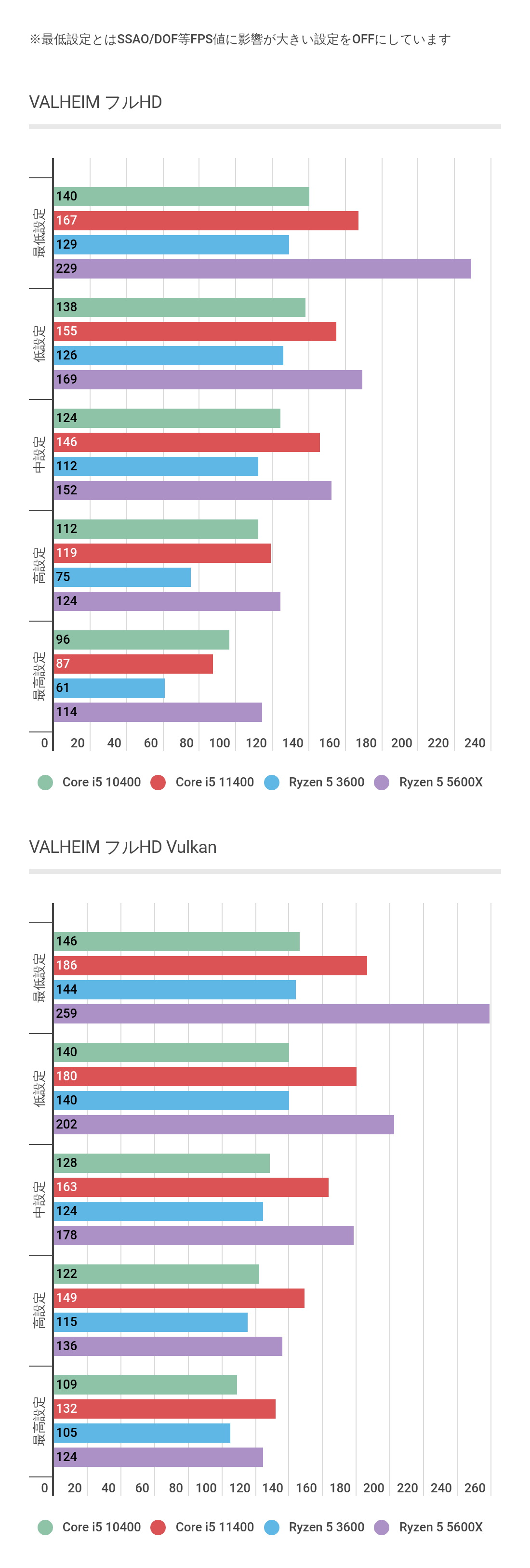 CPU/APU | Corei5 10400 | Corei5 9400F | Ryzen5 5600X | Ryzen5 3600 | Ryzen5 3500 | Ryzen7 2700 | Ryzen5 2600 | Ryzen5 1600AF |