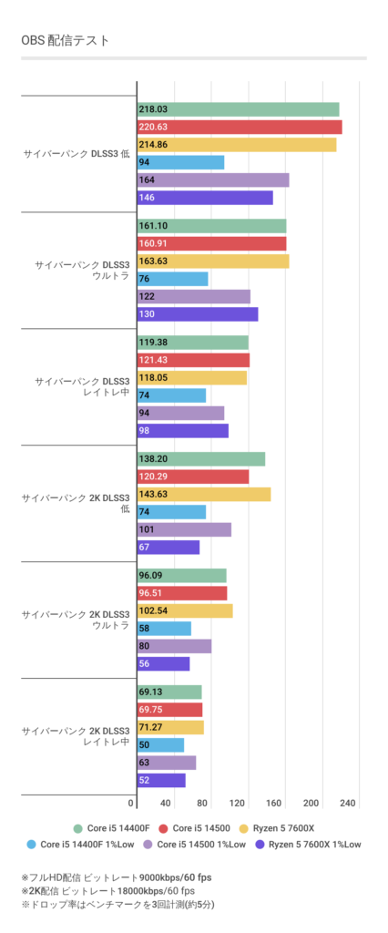 Core i5 14500の配信安定性の高さがわかります。