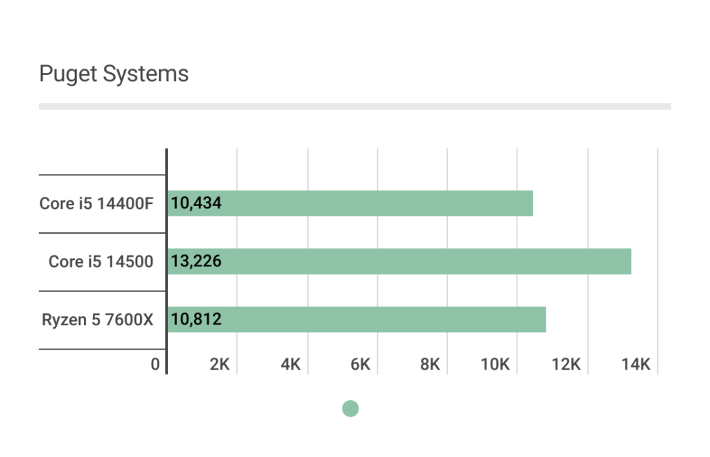 Core i5 14400Fに対して約9%高いのはもちろん、Ryzen 5 7600Xにもわずかに上回る結果に。