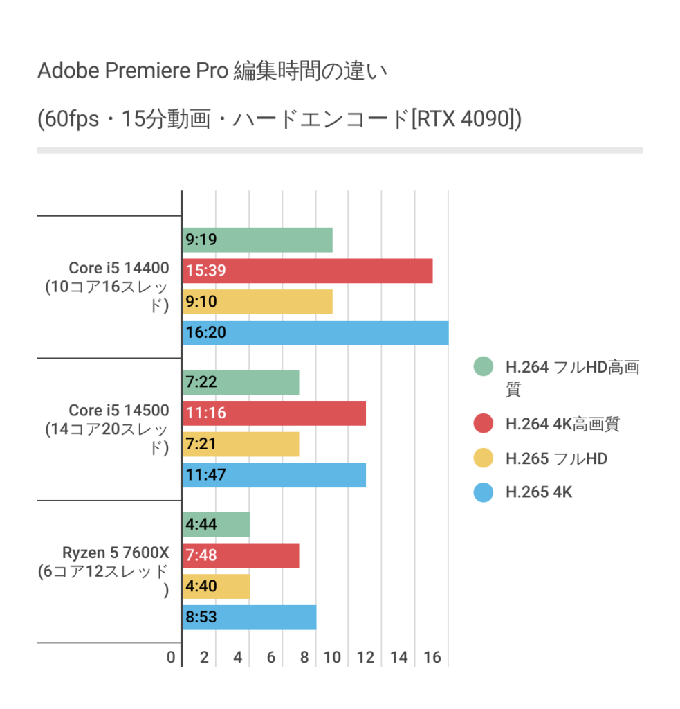 - 動画編集もハードウェアエンコードではRyzen 5 7600Xと大差はない