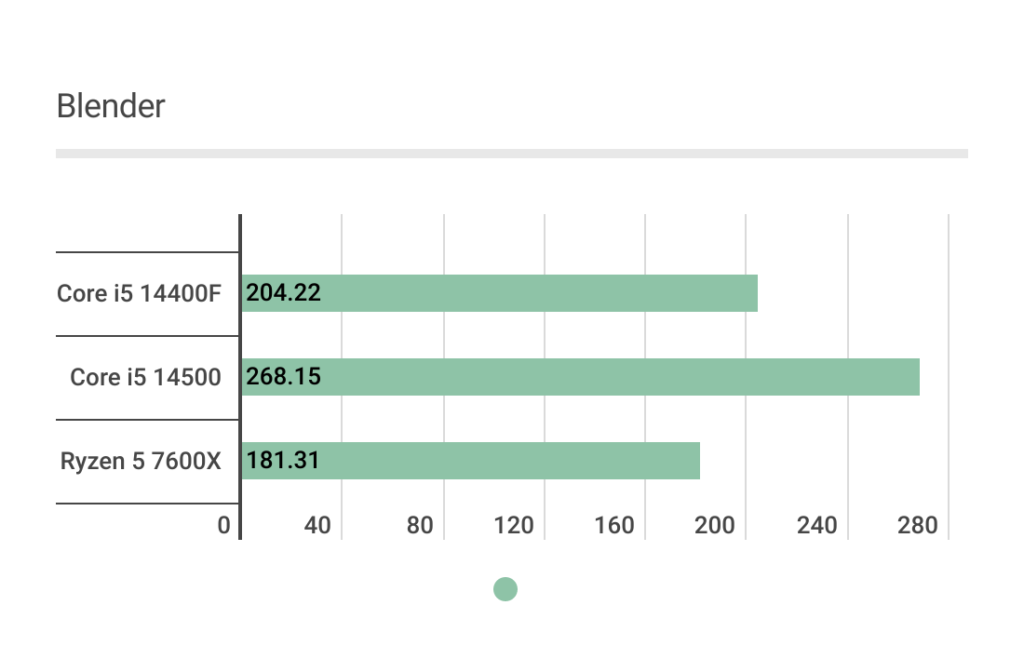 最後は3Dレンダリングです。ベンチマークではCore i5 14500が最も良いスコアだったのにも関わらず、