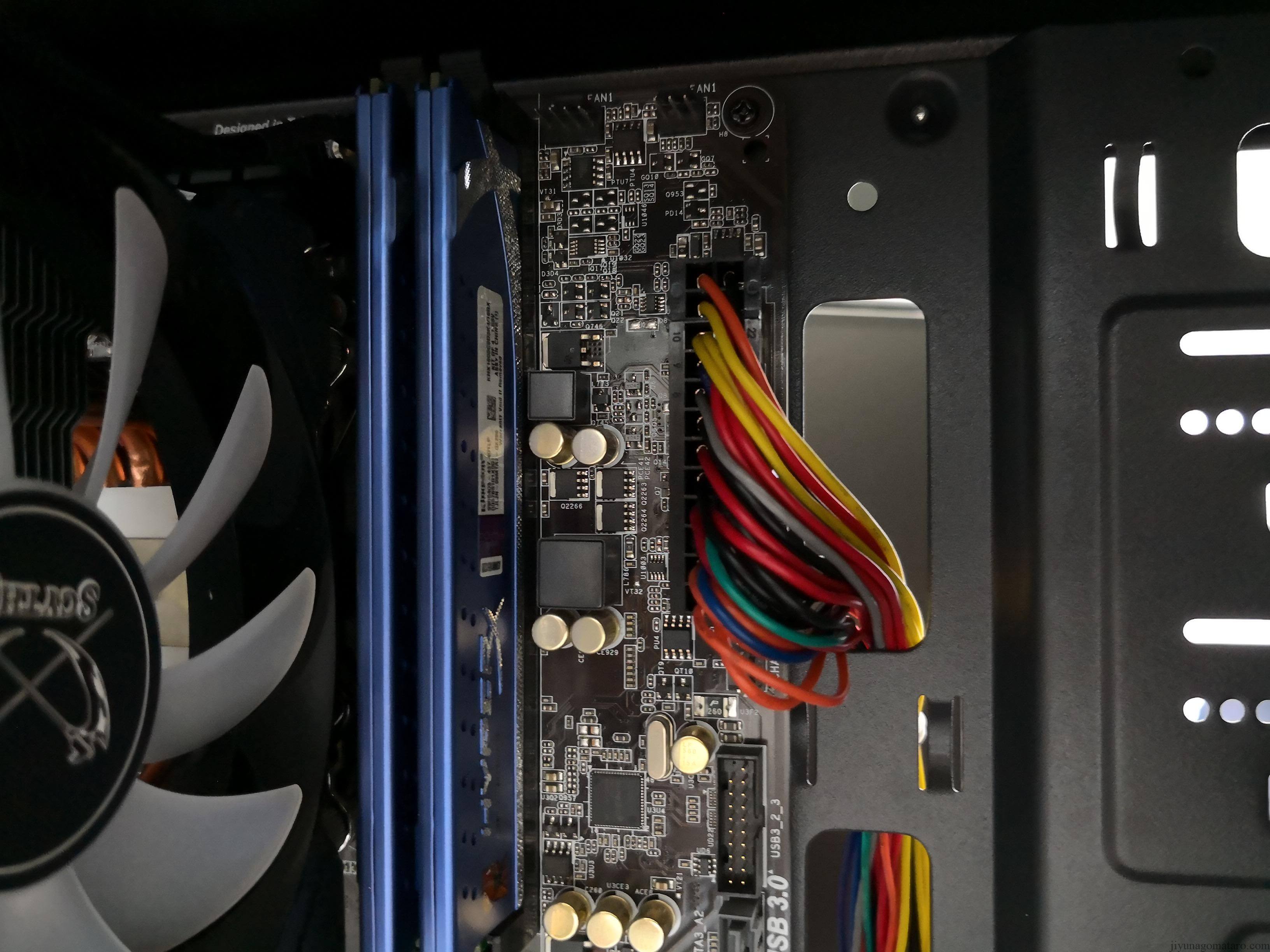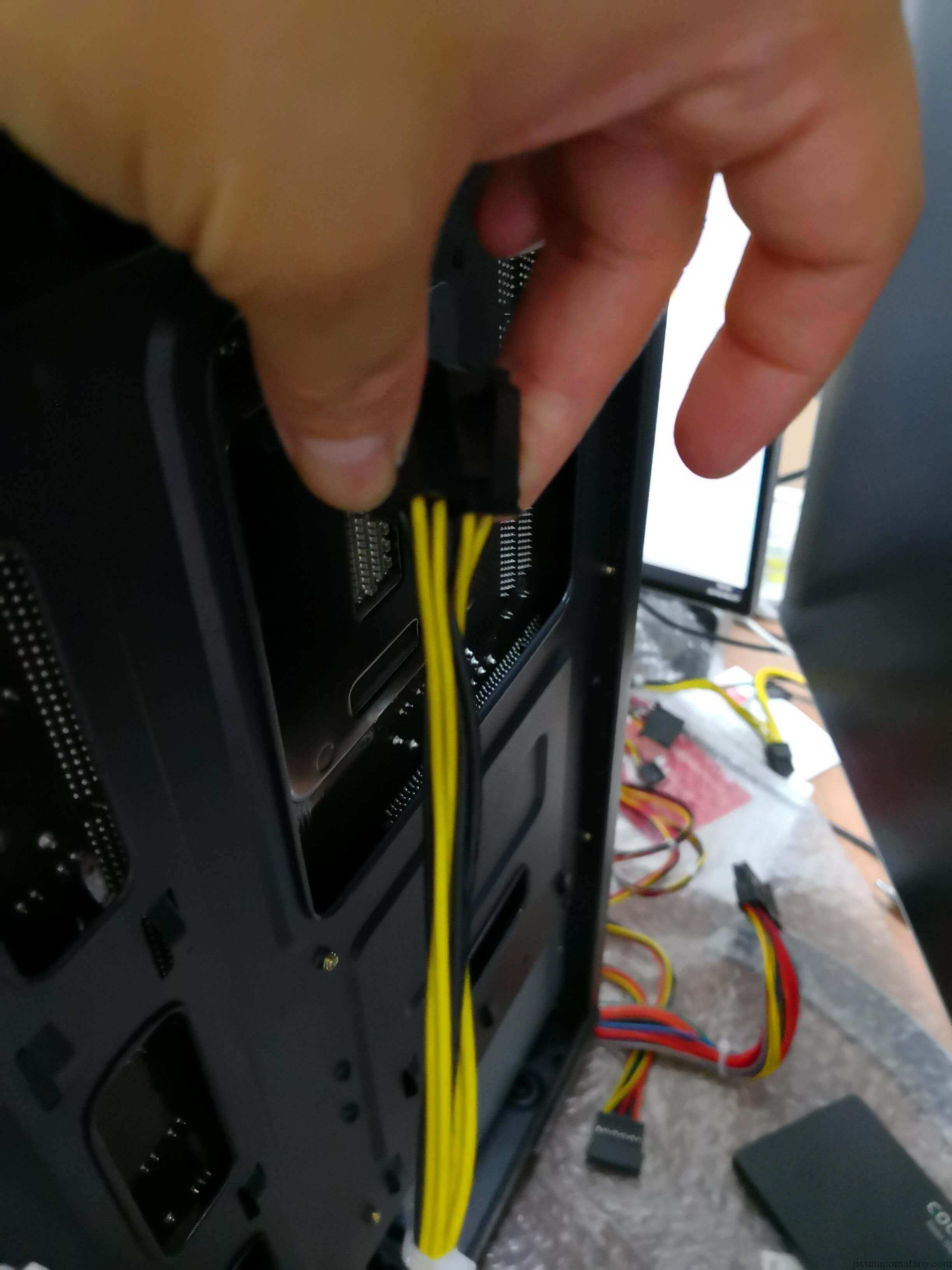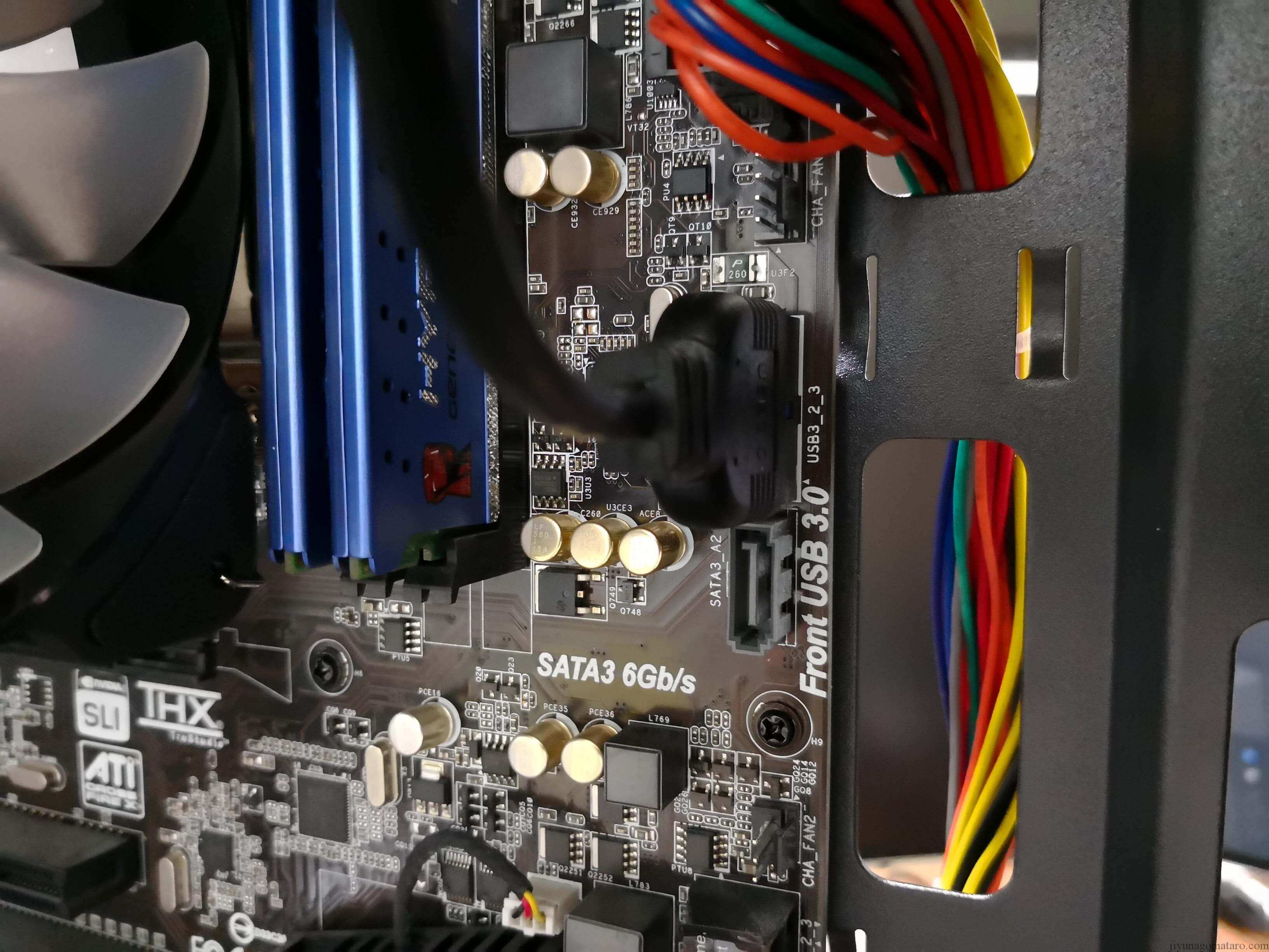SSD、前面USB、AUDIOや電源ピンなど処々取り付けて、