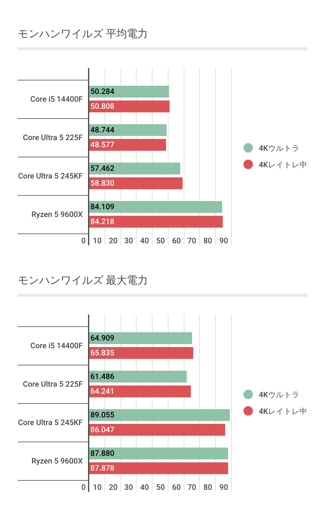 4Kも傾向は変わっておらず、Core i5 14400Fよりはスコアは上回っていますがRyzen 5 9600Xよりは下回る結果です。