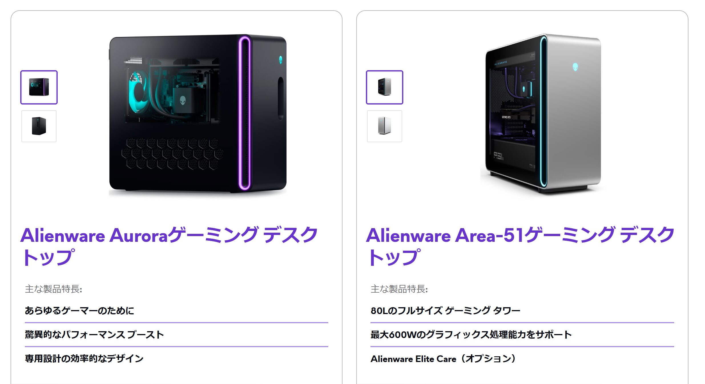 Alienwareのシリーズは非常にシンプルで、Alienware Aurora R15とR51の2種類。