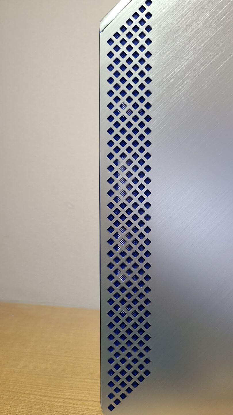 本体の側面は吸排気口があるだけのかなりシンプルなデザイン。