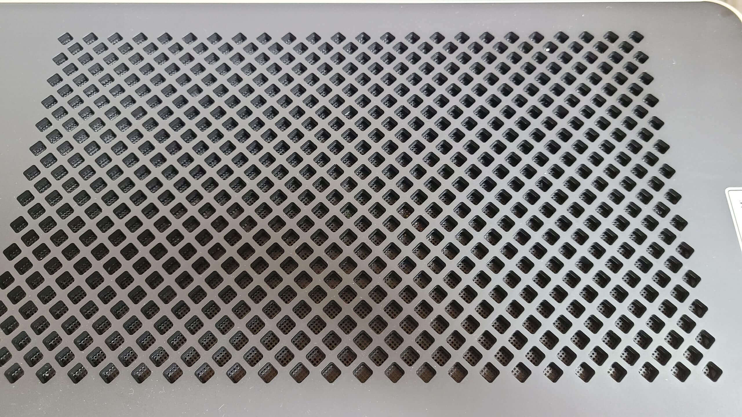 上部にはおもに排気をおこなう大きなメッシュパネルがありますが、
