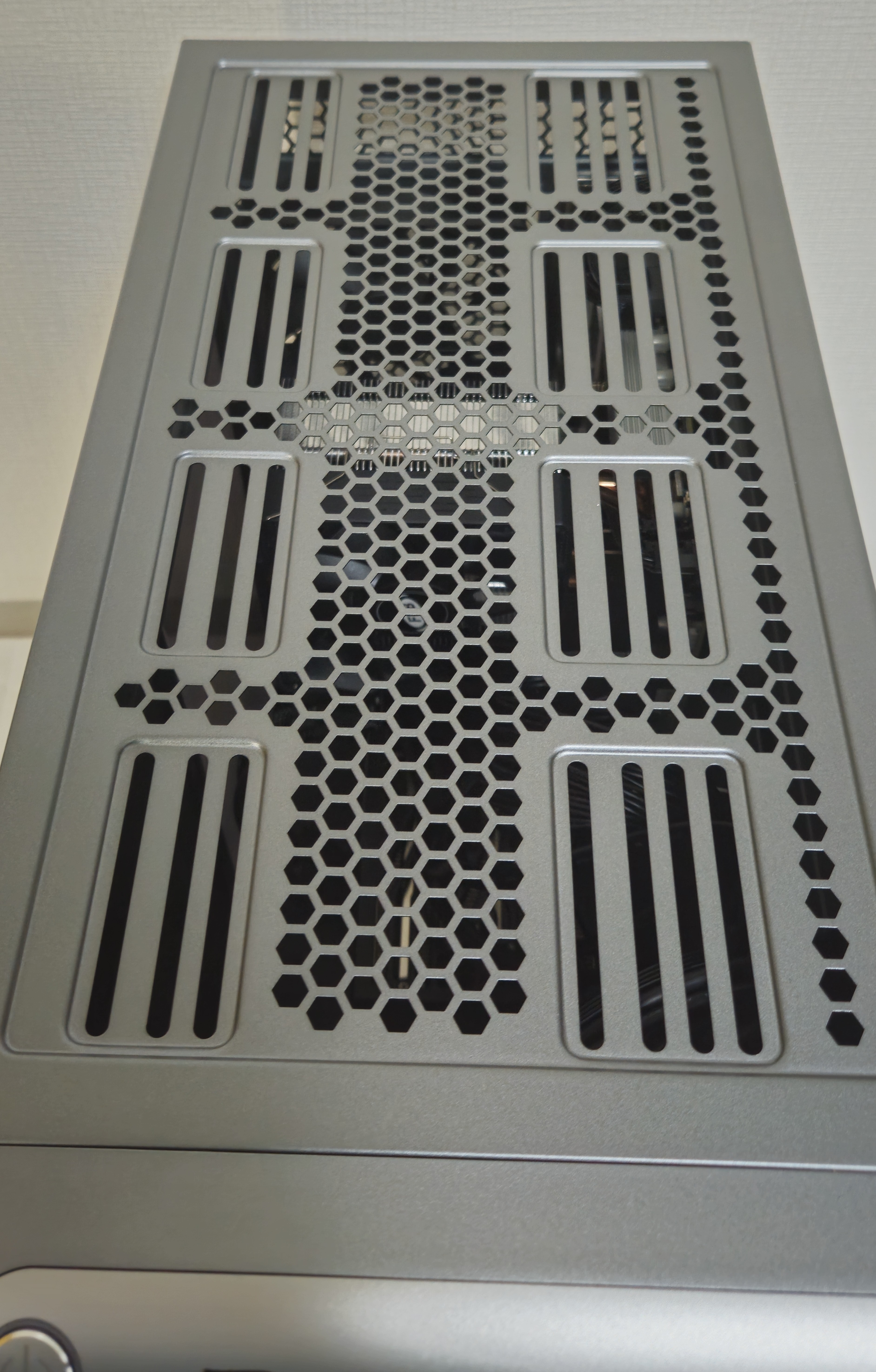 上部にはおもに排気をおこなう大きなメッシュパネルがありますが、