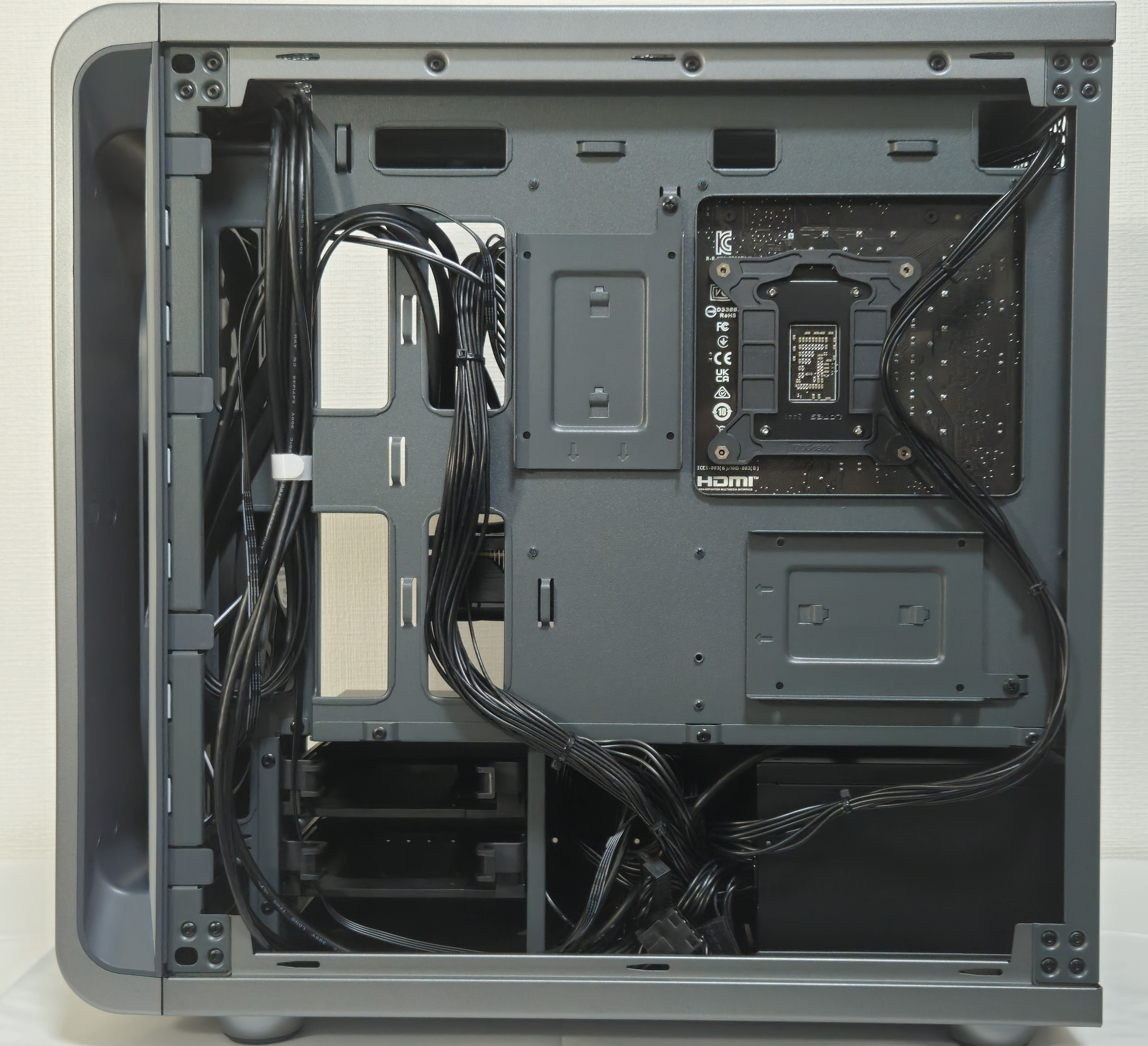 また配線が綺麗にまとまっていますので、正面吸気から背面排気までの流路はしっかりと確保されています。