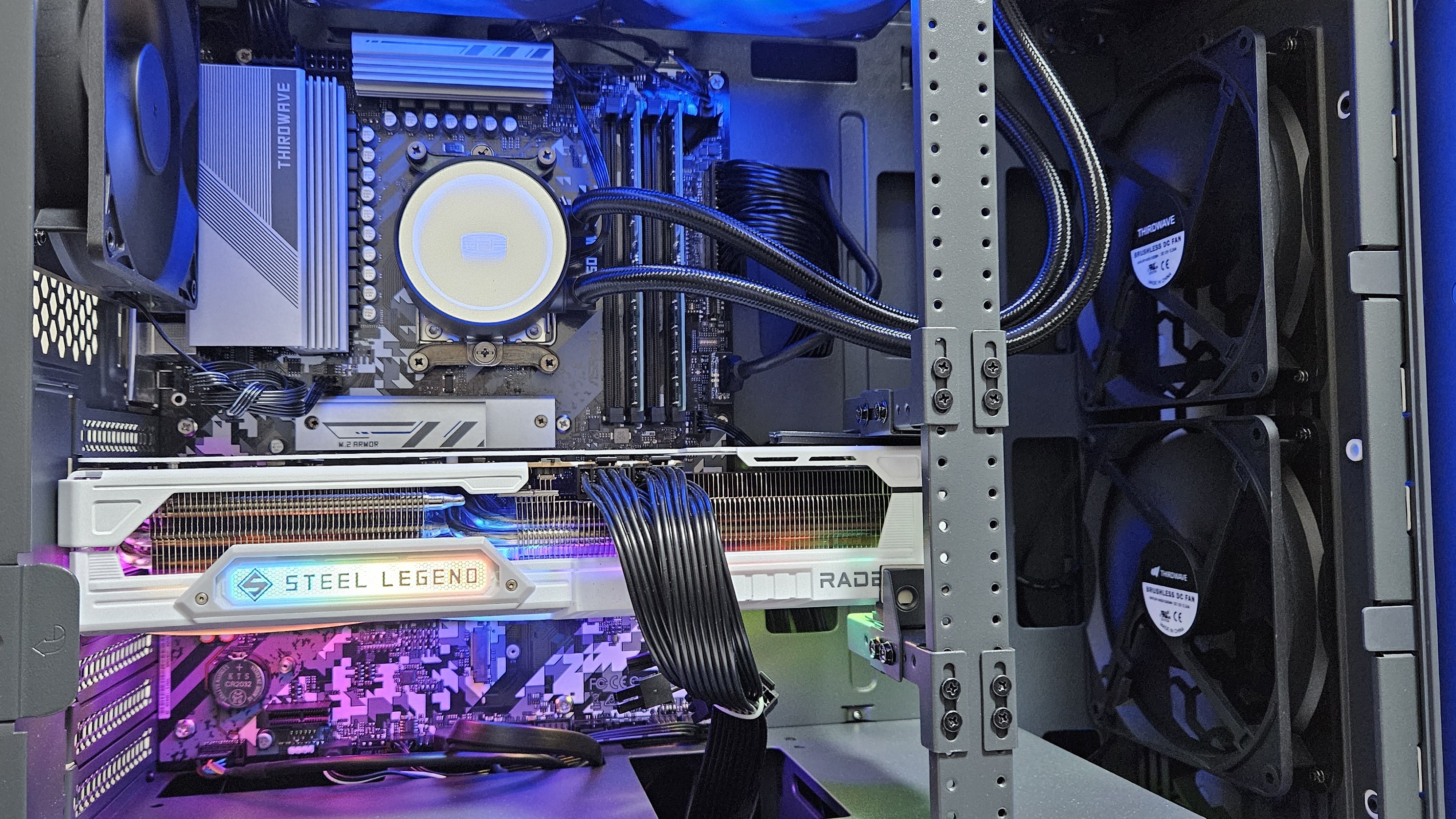 今回は空冷ファンですが、簡易水冷クーラーももちろんあります。標準ではフロントの吸気、リアの排気空冷ファンが付いています。