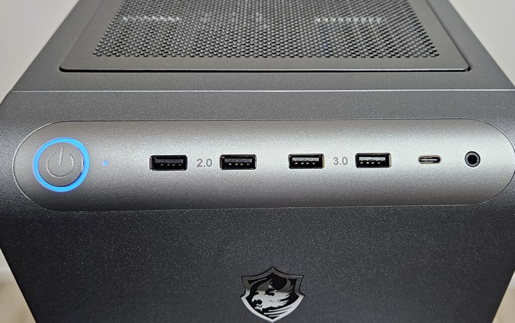 アクセスしやすい上部入出力はUSB 3.2 Gen1 Type-Aが2口で、残念ながらUSB Type Cは用意されていません。