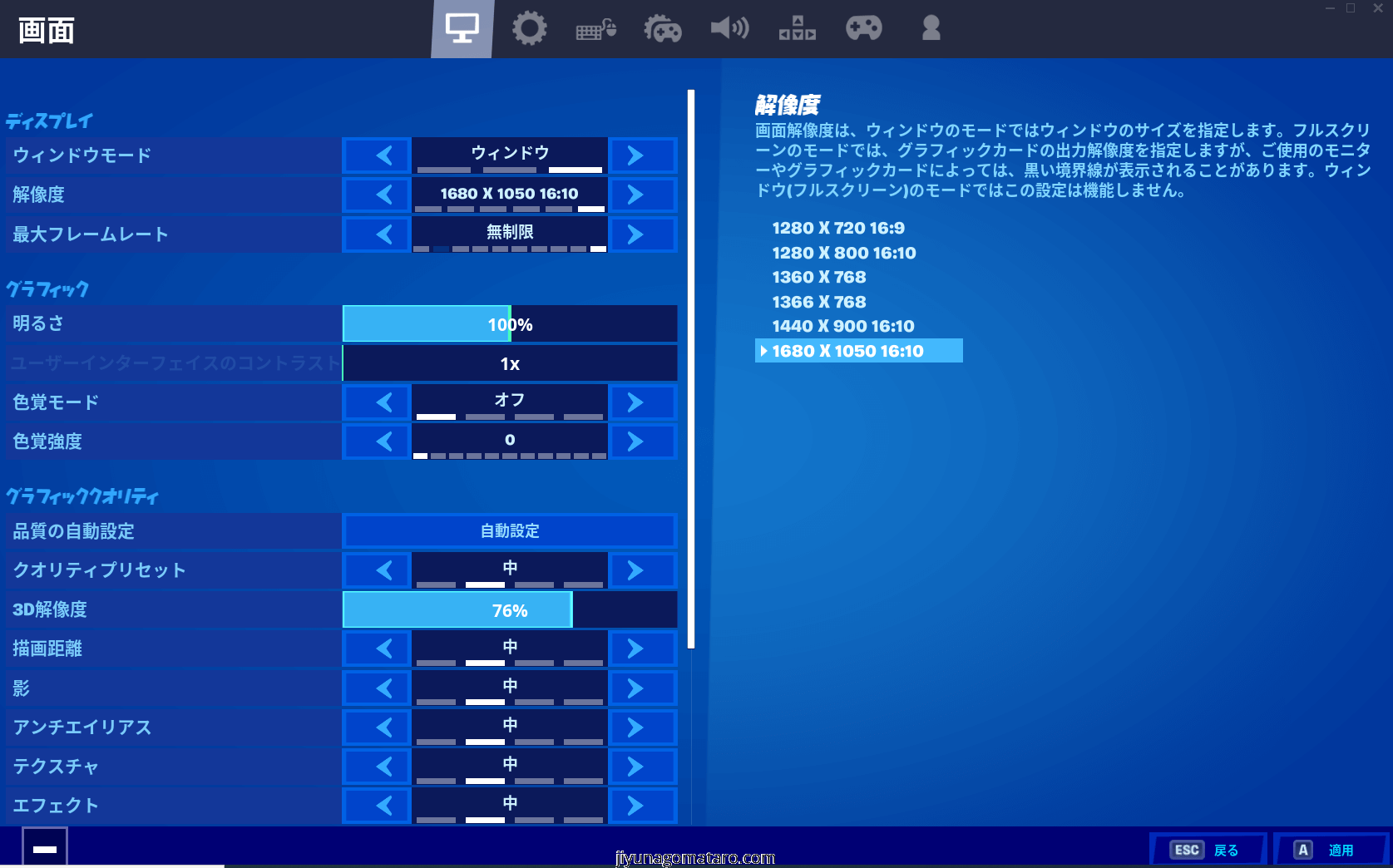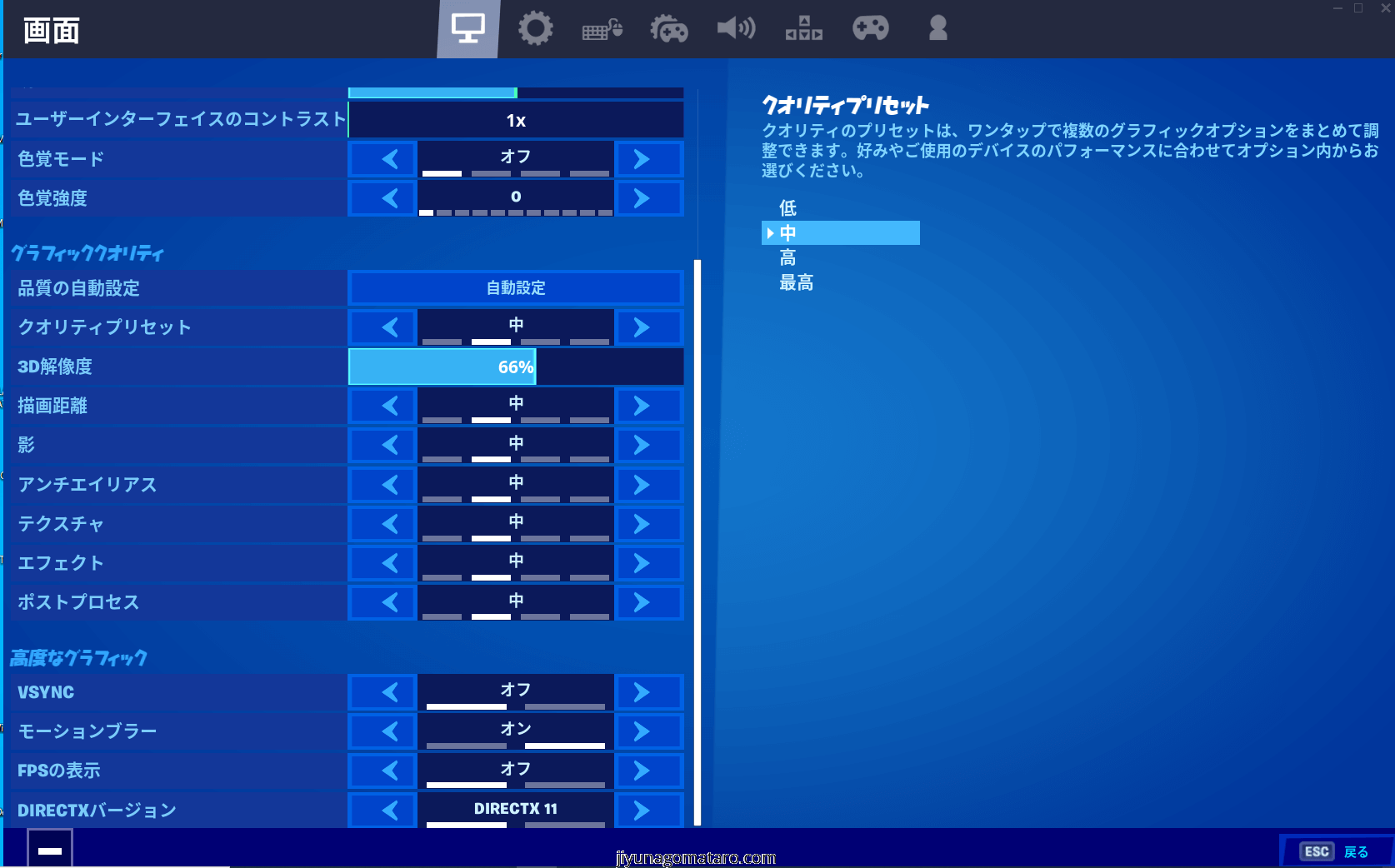 特にフォートナイトはかなり細かく設定ができるので、FPSの最適化がしやすいです。