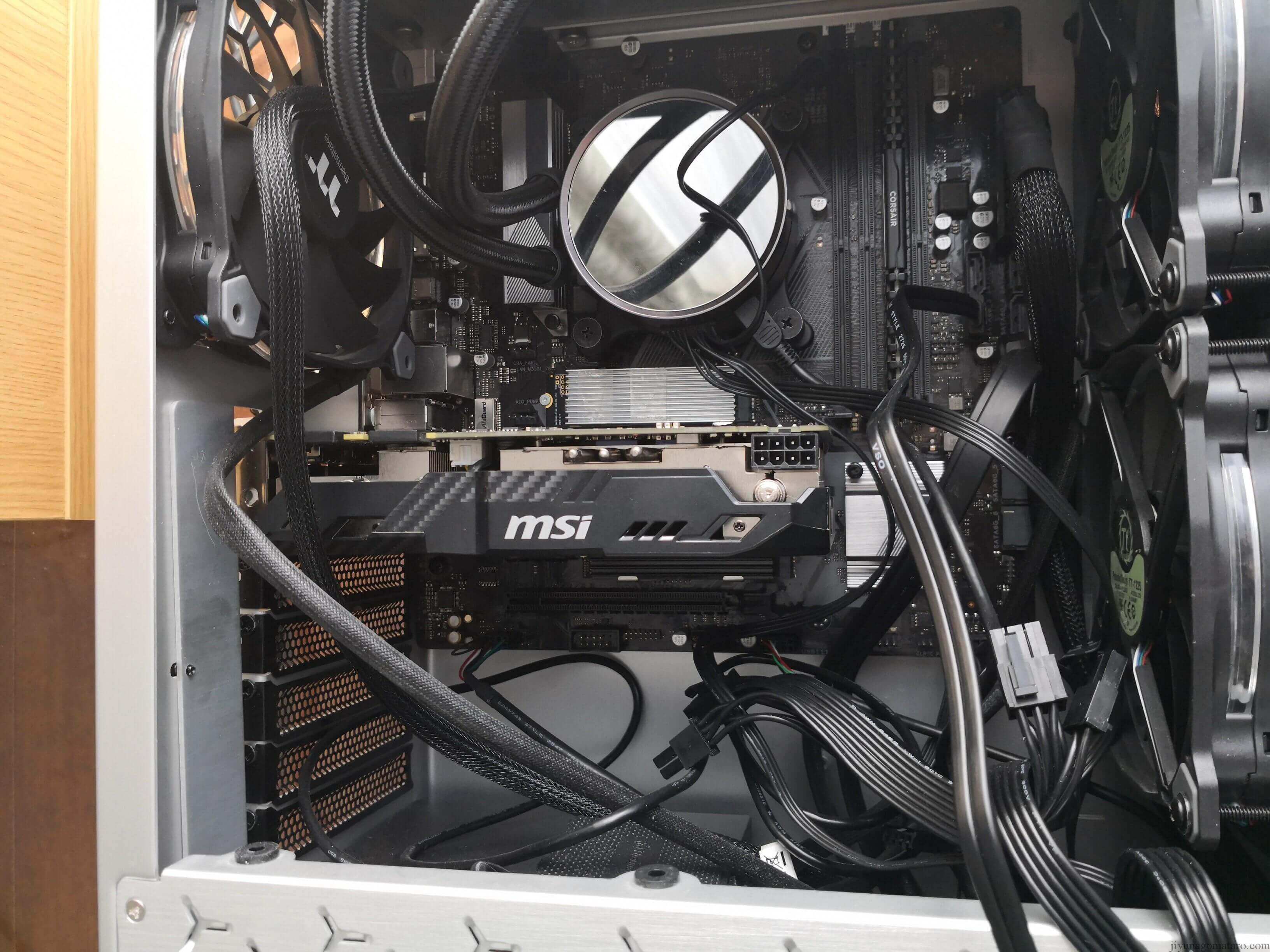 本来であればグラボをねじで固定し、PCケースの蓋を閉めるのですが、