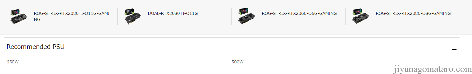 電源容量が足りるかどうかは、やはりグラボメーカーの推奨電源容量を確認すると良いでしょう。