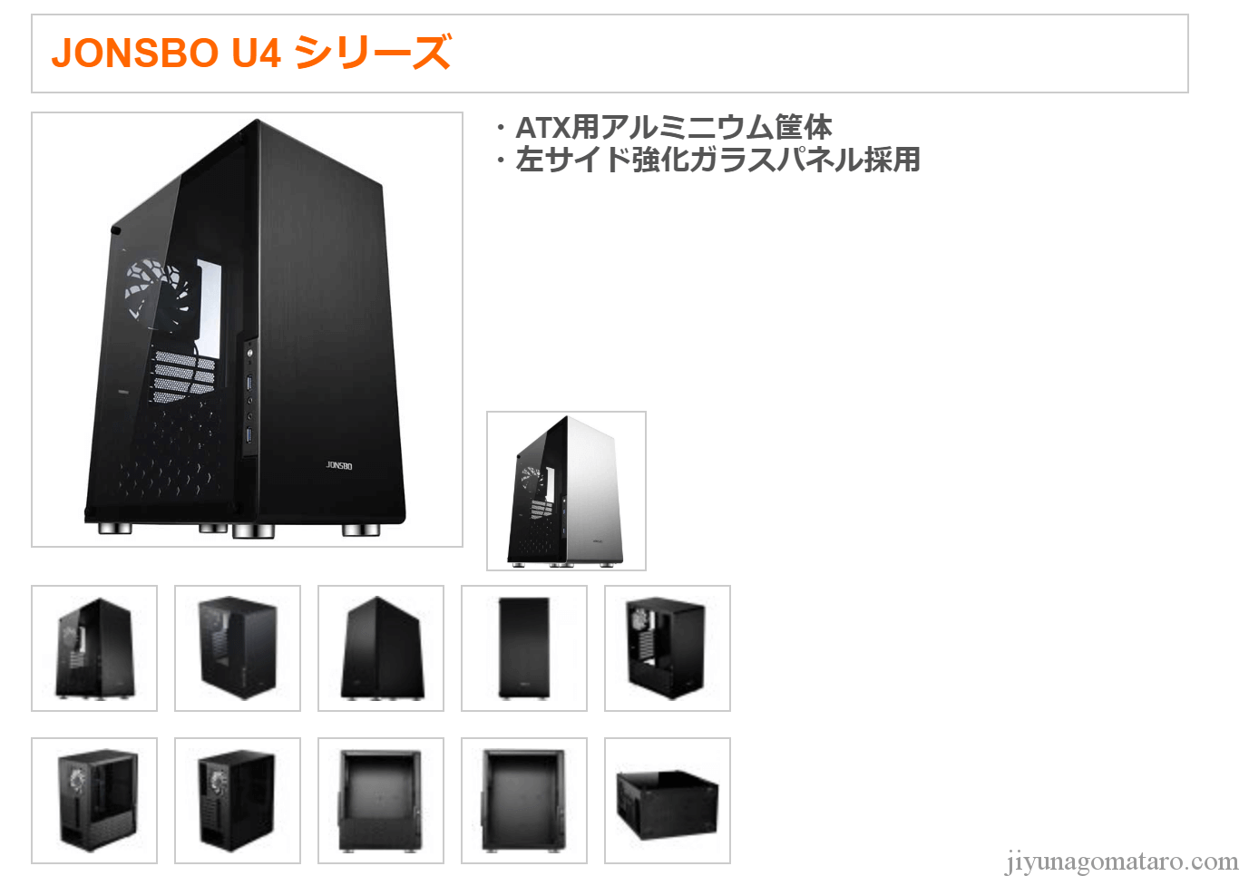 例えば私のお気に入りPCケースのJONSUBO U4だと