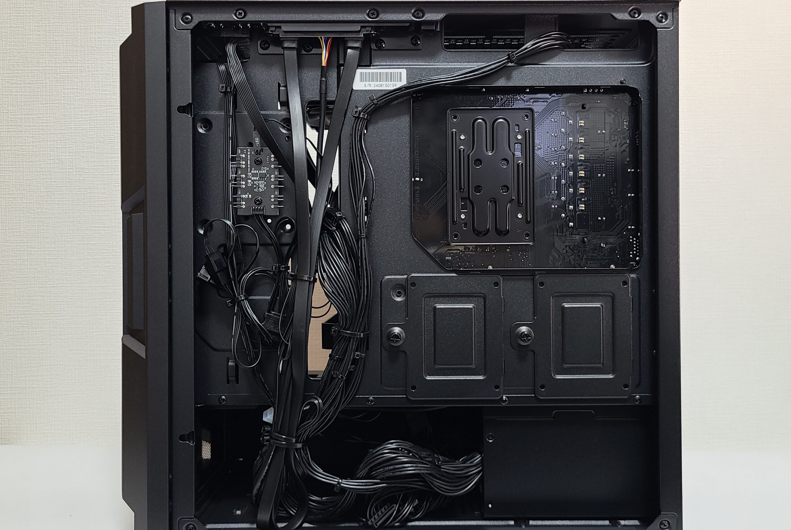 内部は電源ユニットが分離している良くある定番の構造。内部はかなりゆとりがあり、排熱で困る心配はなさそう。