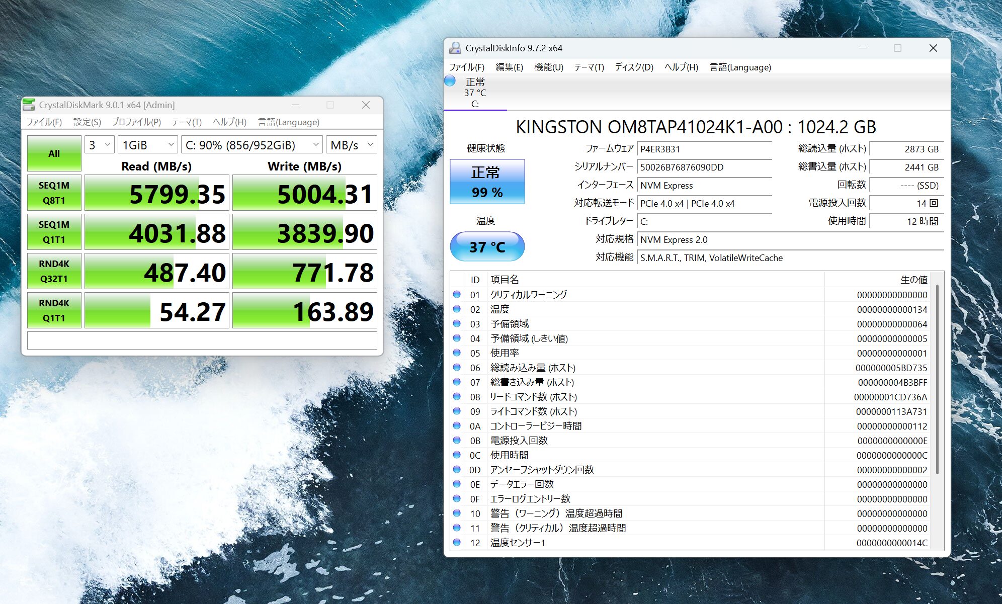 読み書き速度はGen4標準。温度は常に低温でしっかりと冷却が効いているので心配はいらないでしょう。