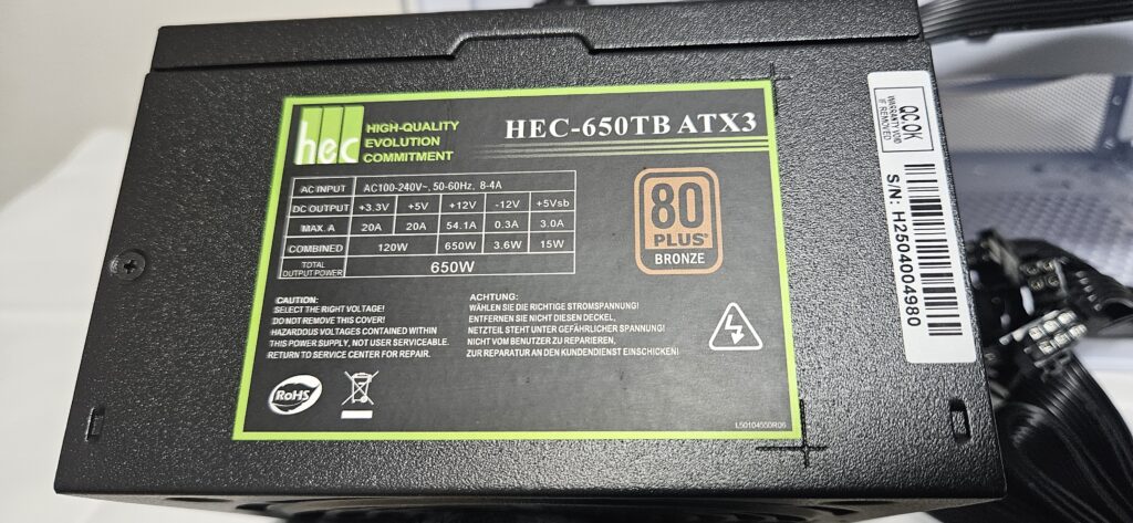 メーカーはHEC製。台湾のメーカーですがあまり自作erでは馴染みがないメーカーかもしれません。まあ可もなく不可もなくといったところでしょうか。
