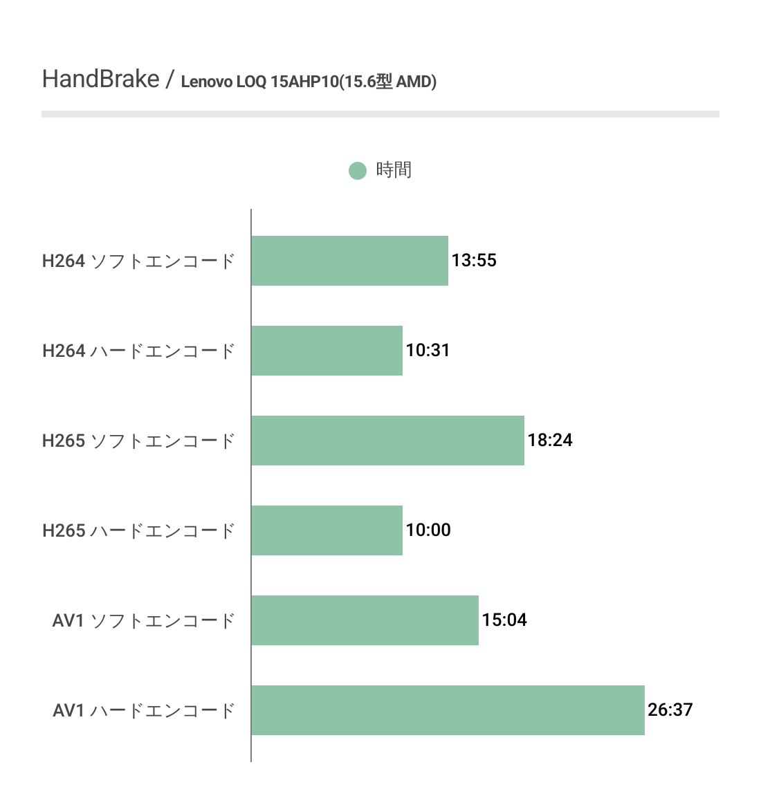 もうひとつフリーソフトのHandBrakeでも計測。こちらは最新のAV1エンコードも試してみました。