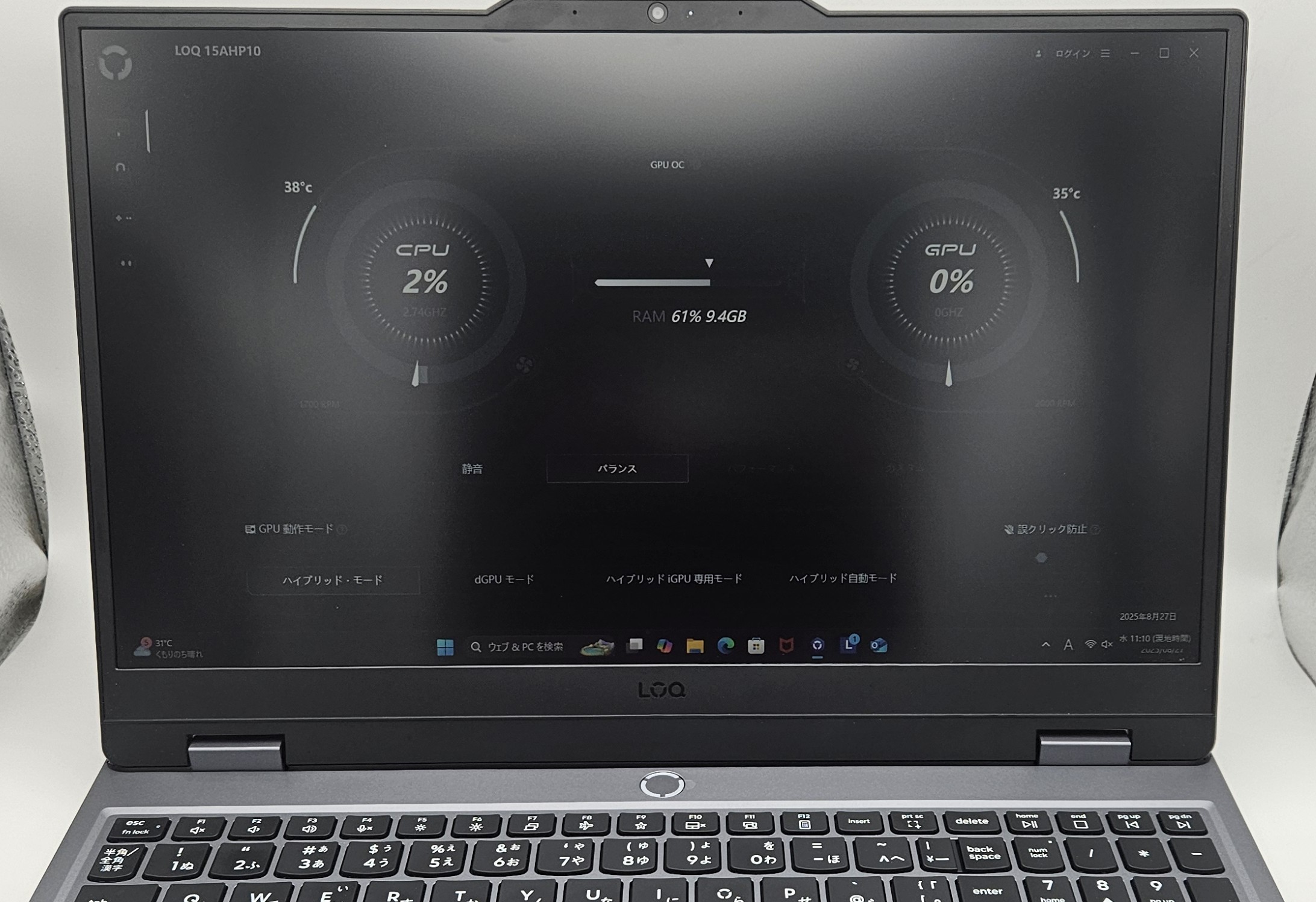 今回はレノボで販売しているゲーミングノートPC「LOQ15AHP10」を、