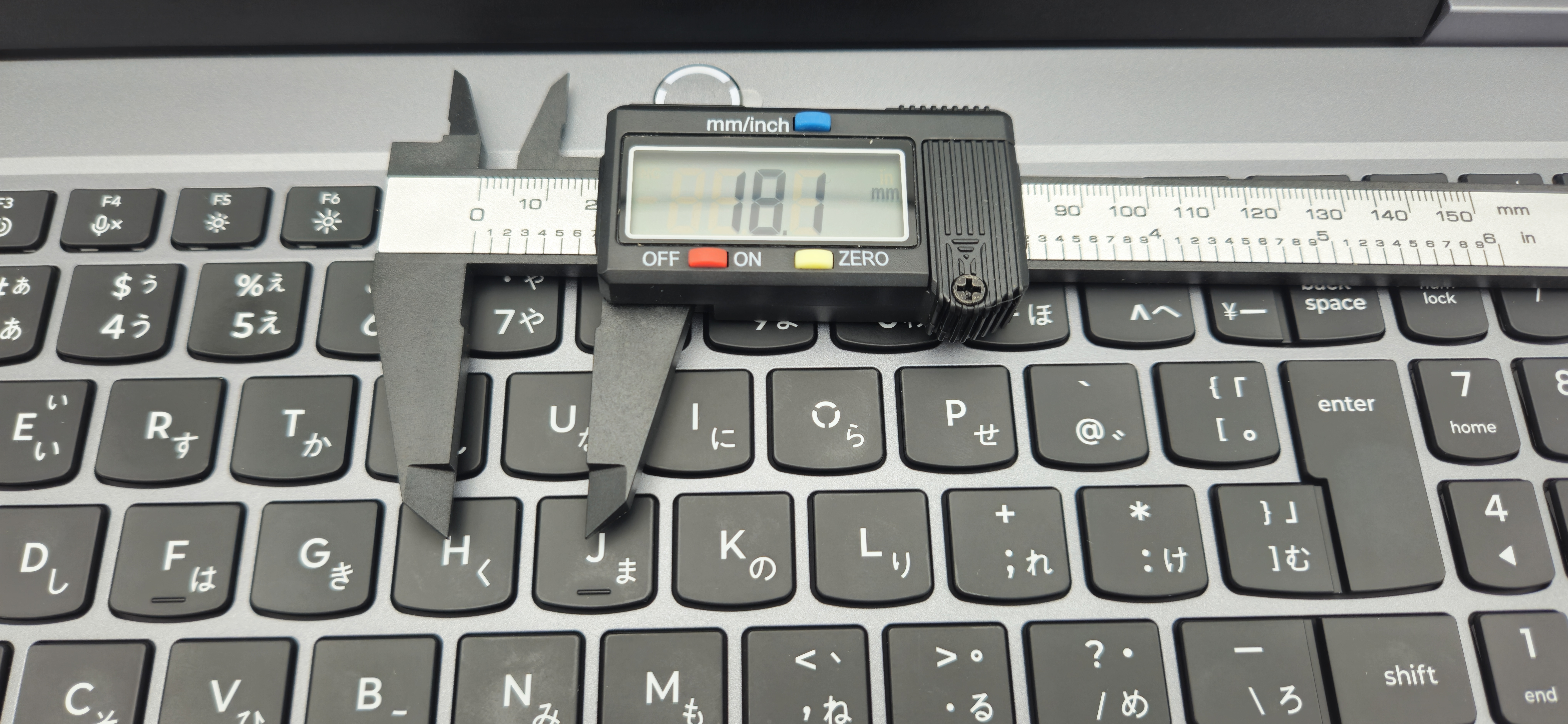 キーピッチは計測したところ約18.1mm。標準は18~19mmと言われているので、標準的。