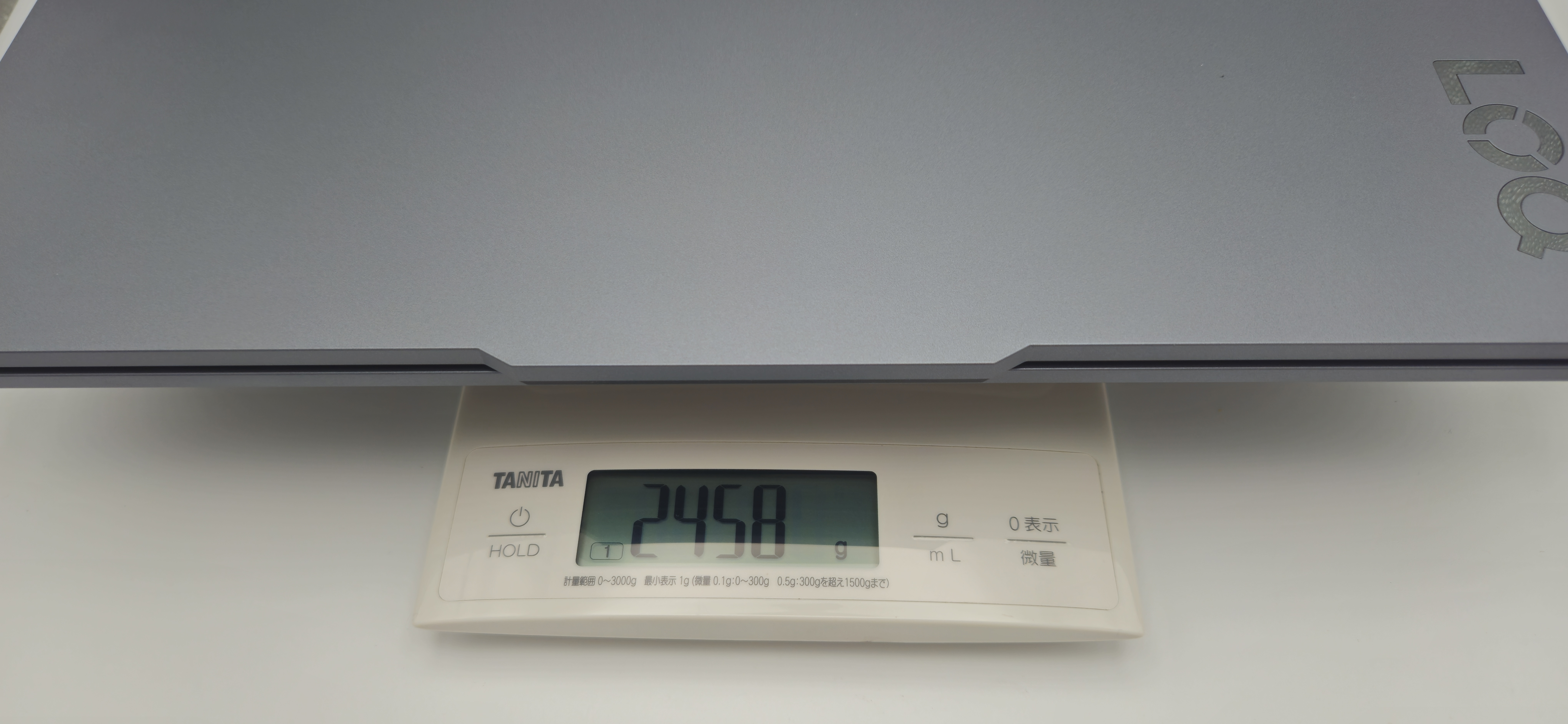 上記は折りたたんだ時の上部画像ですが、普通はただ長方形になりやすいノートPCも、LOQは微妙に形を変えてきているんです。