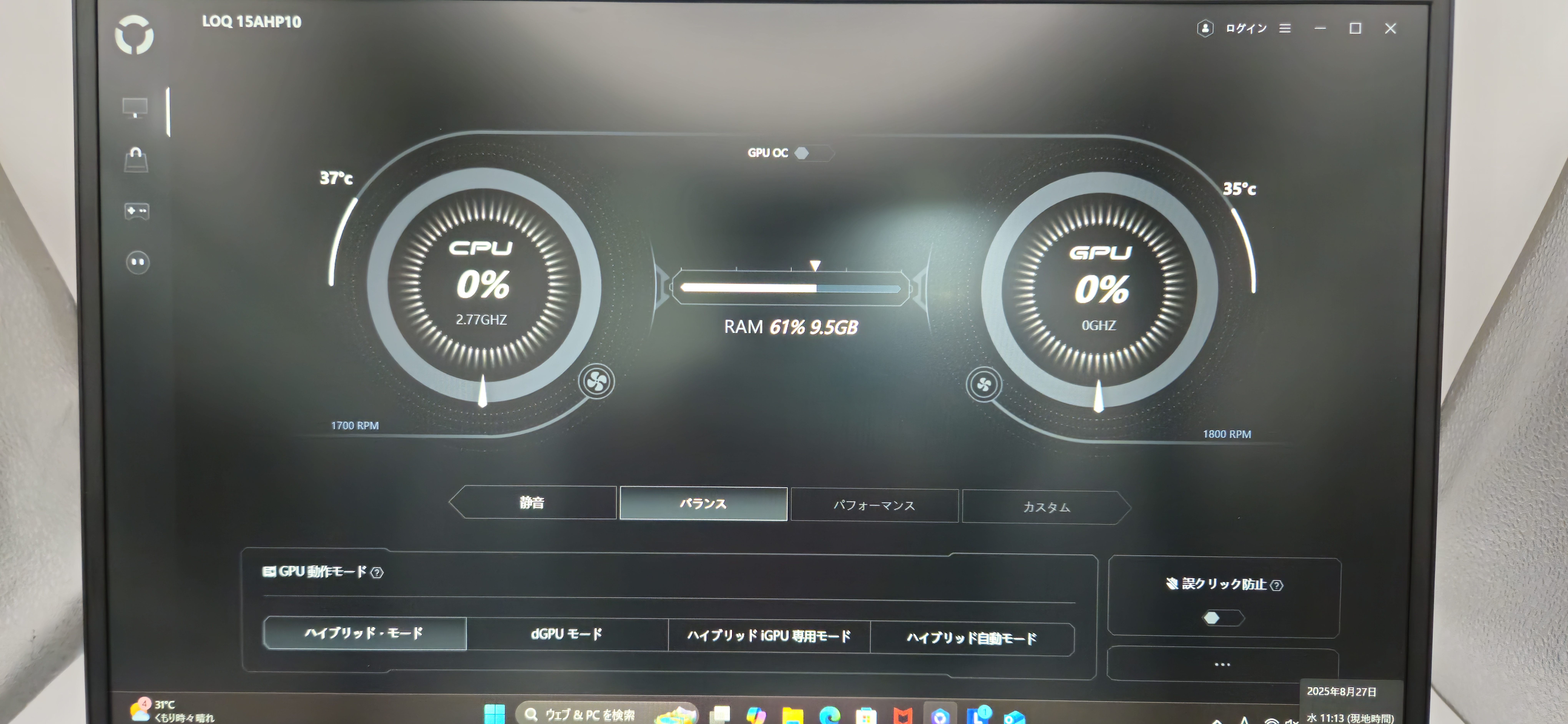 LOQ 15AHP10は決して高性能というクラスではなく、安さを重視した構成ですが、それでも配信もフルHD相当なら問題なくできる性能は有しています。