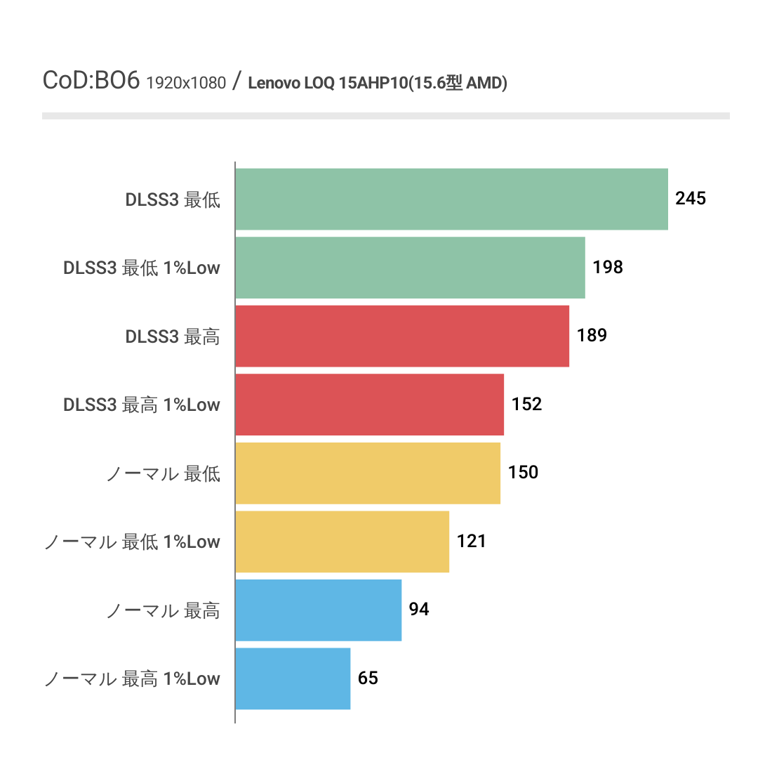 フレームレート | 245 | 198 | 189 | 152 | 150 | 121 | 94 | 65 |
