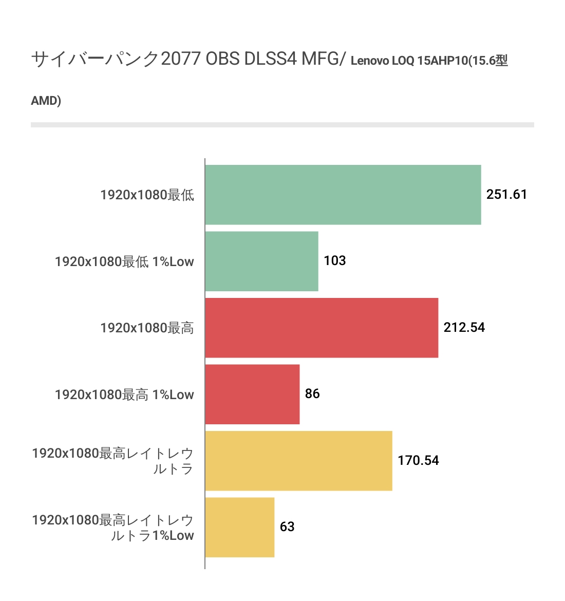 Lenovo LOQ 15AHP10(15.6型 AMD)のゲーム性能