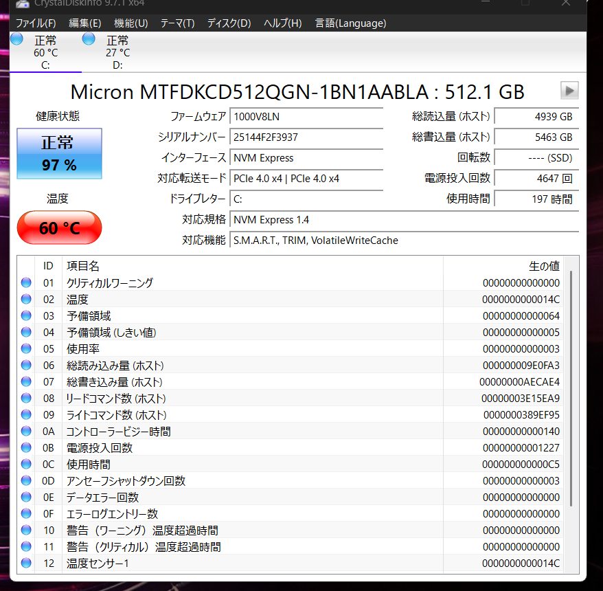 記憶領域はGen4 NVMe SSDの512GB容量になっています。