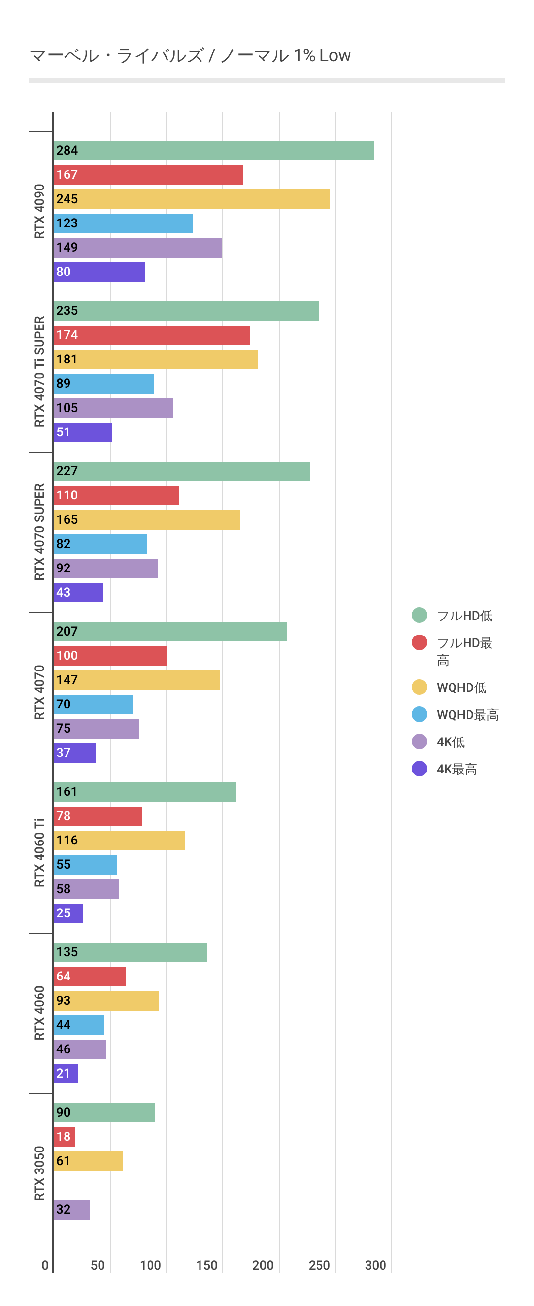 ただマーベルライバルズはPvPですからフレームレートの安定性も重要。1%Lowはどうでしょうか?